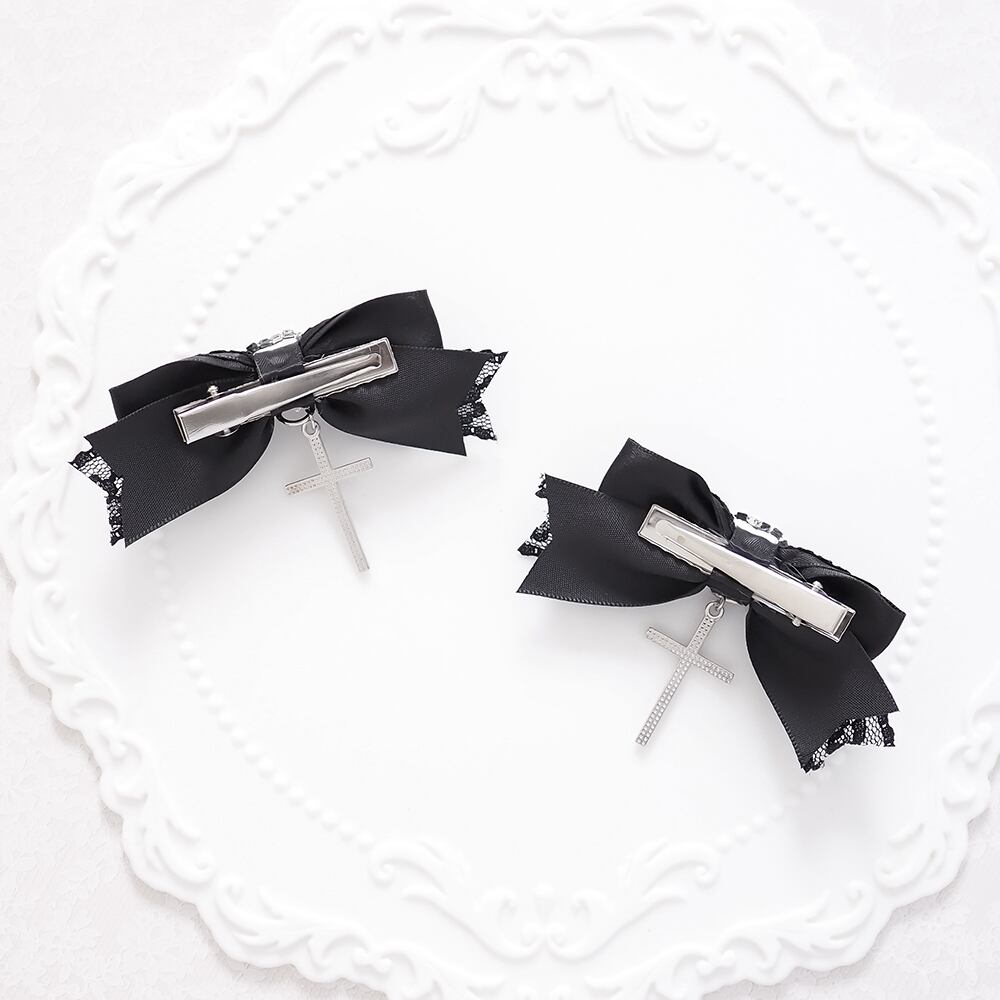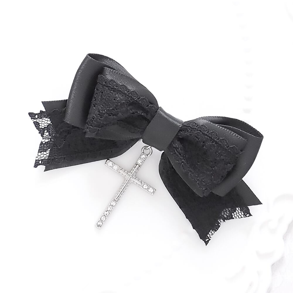 ヘアクリップ 十字架 クロス リボン 量産型 地雷 ゴシック ゴスロリ 推し色 卒業式 卒園式 結婚式 パール レース