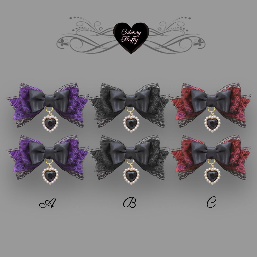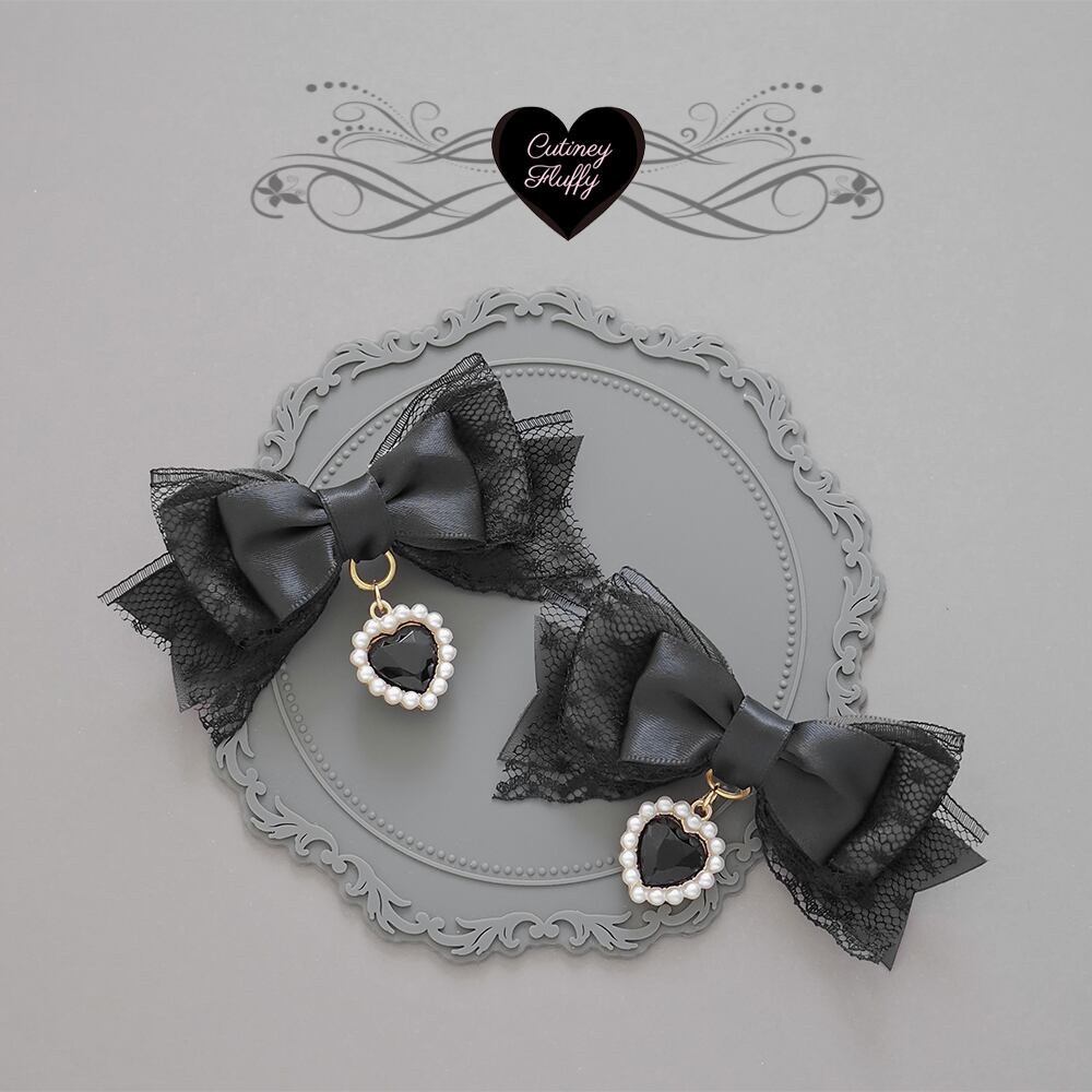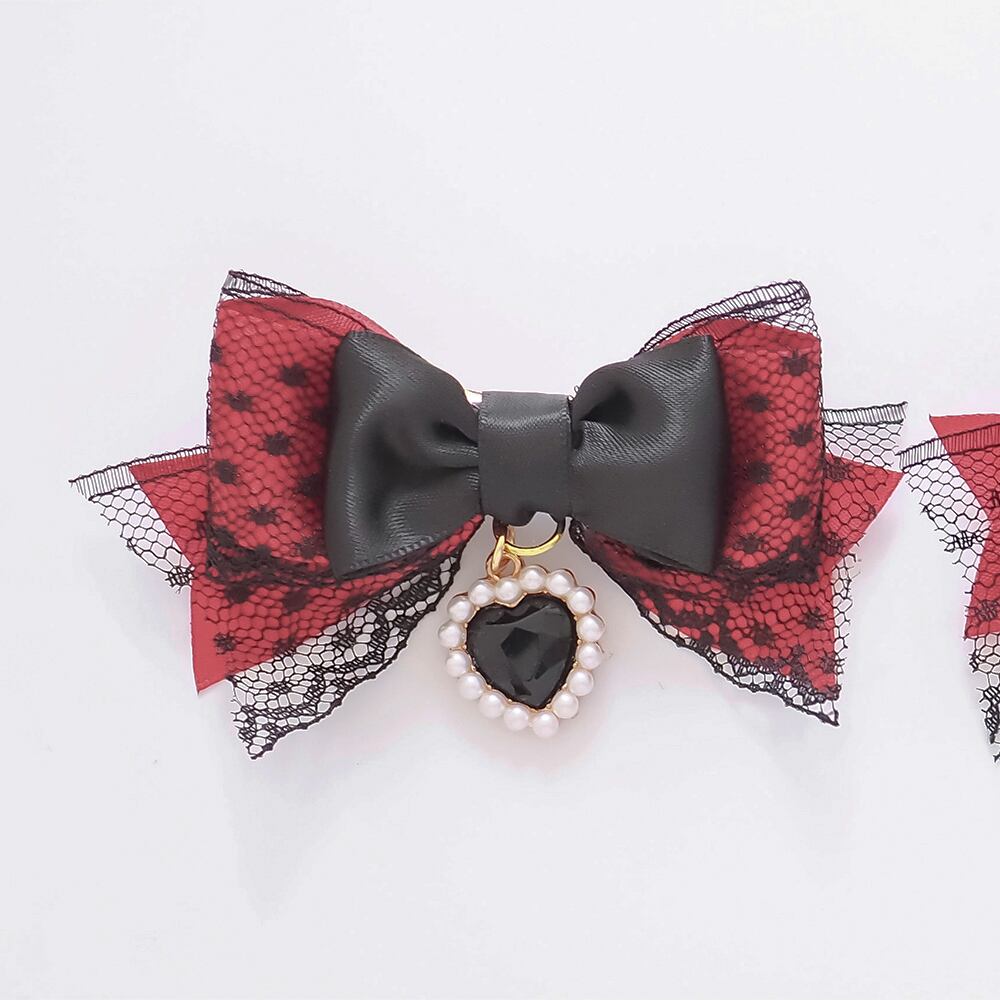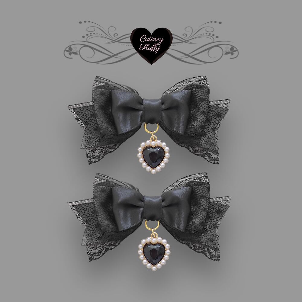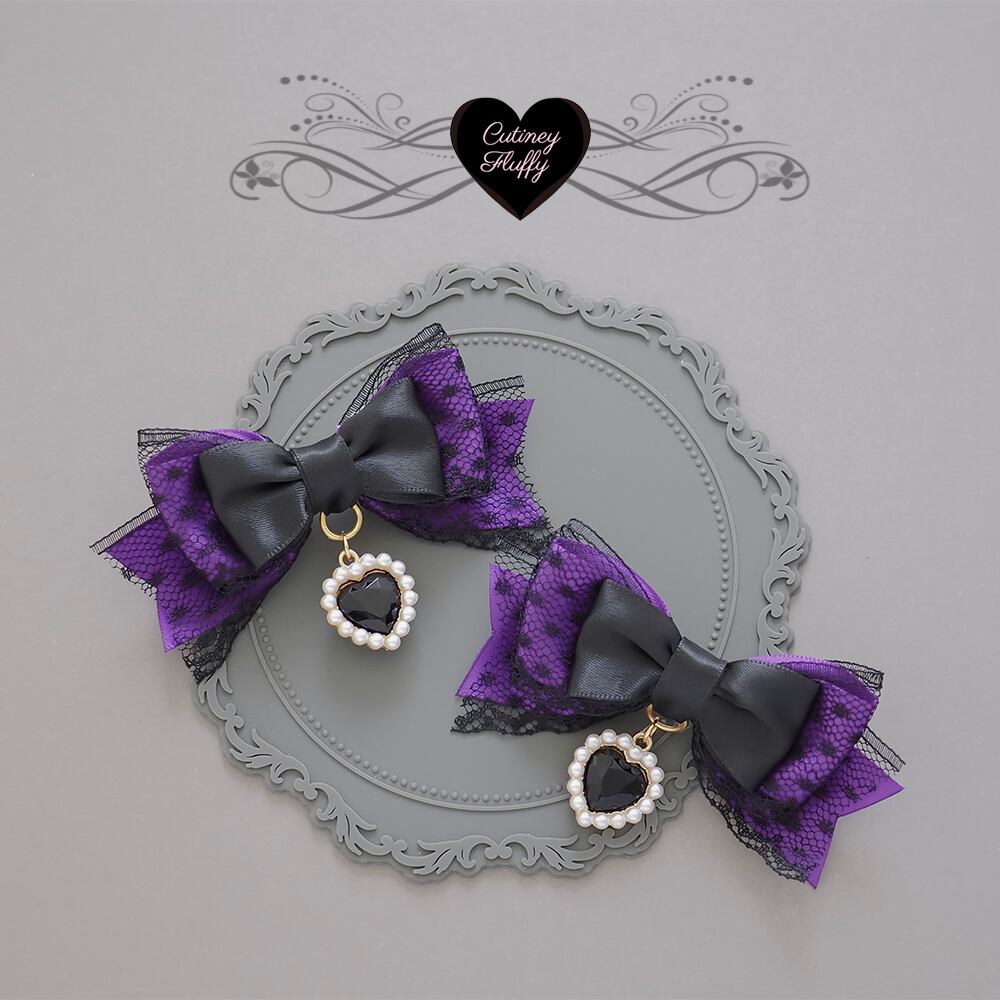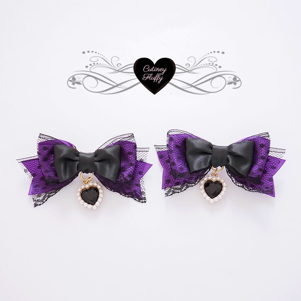 ドット ブラック チュール レース ヘアクリップ ヘアリボン 黒 赤 紫 2個セット ツインテール