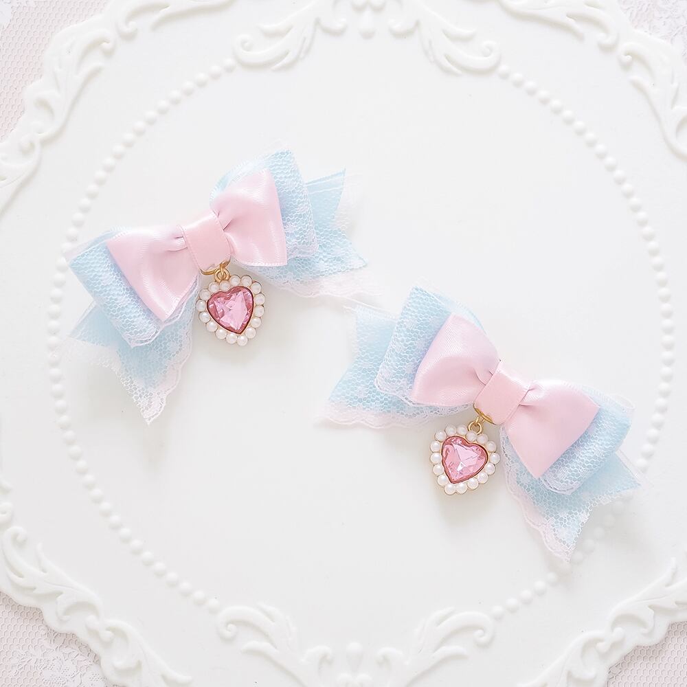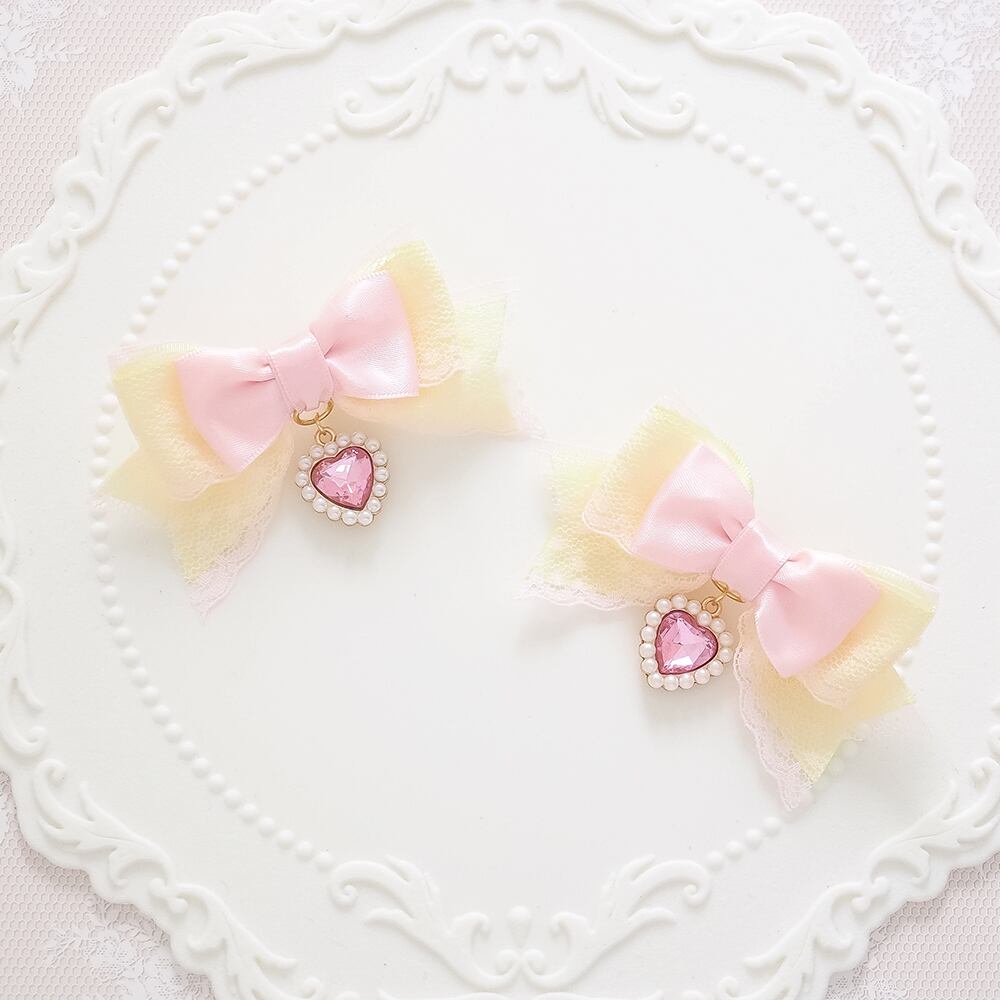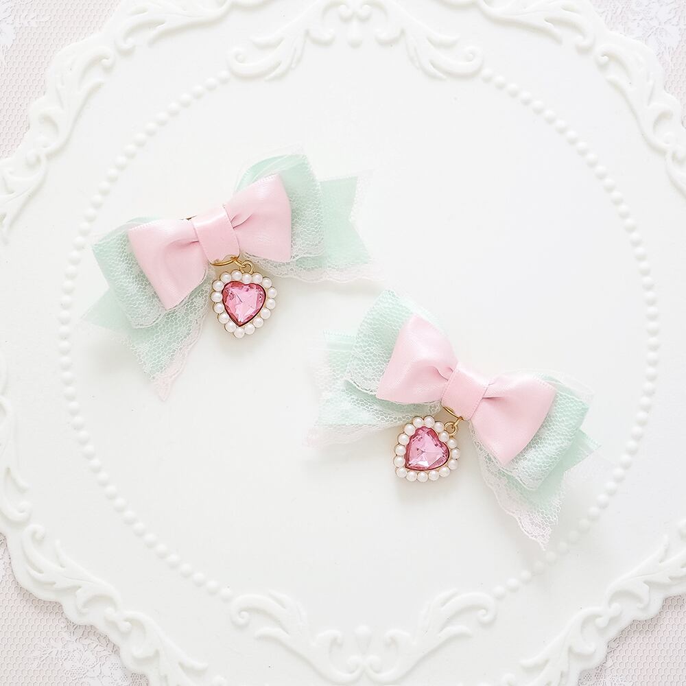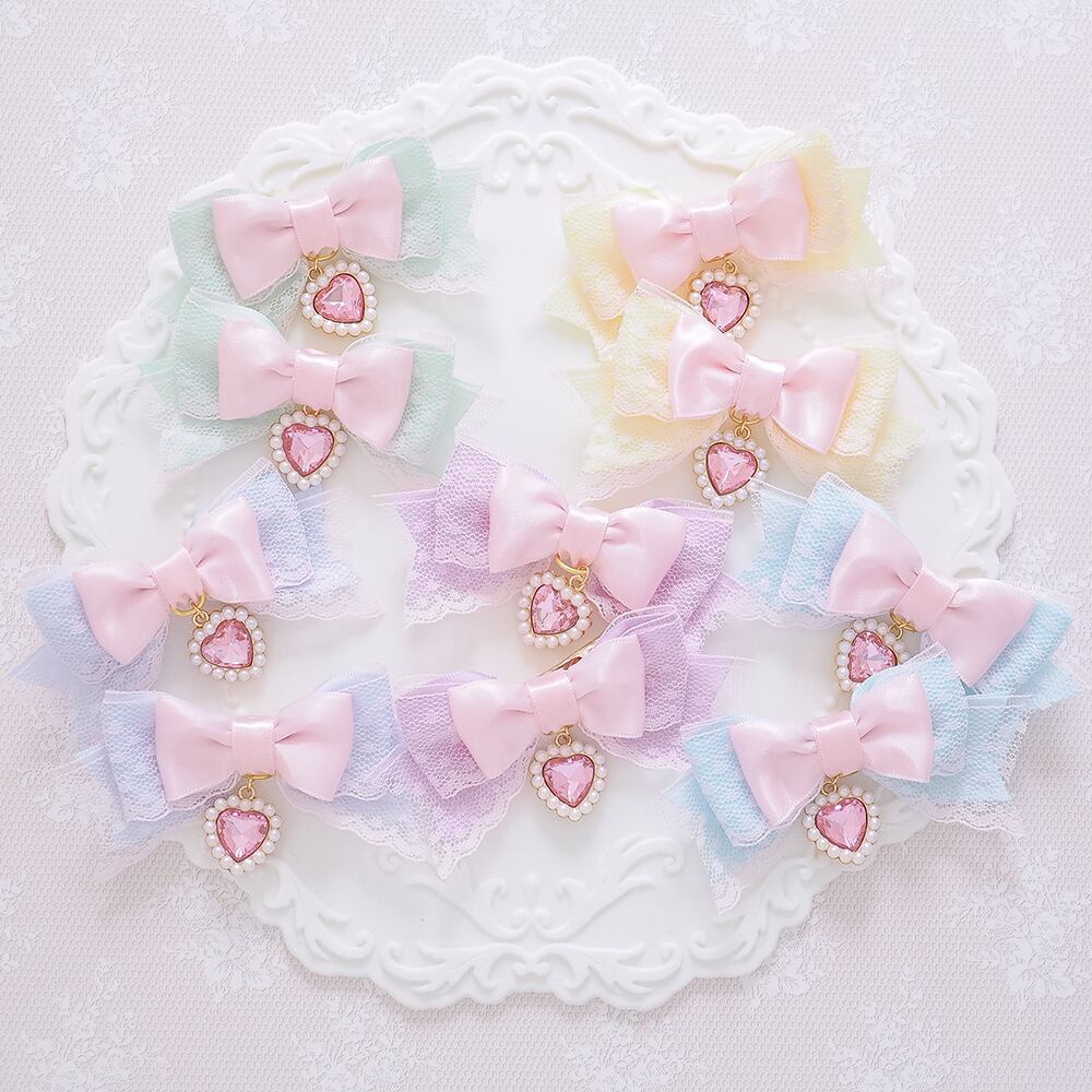ヘアクリップ 量産型 ゴスロリ ゴシック j地雷 ロリータ ロリィタ ピンク パステルカラー レース ハート リボン
