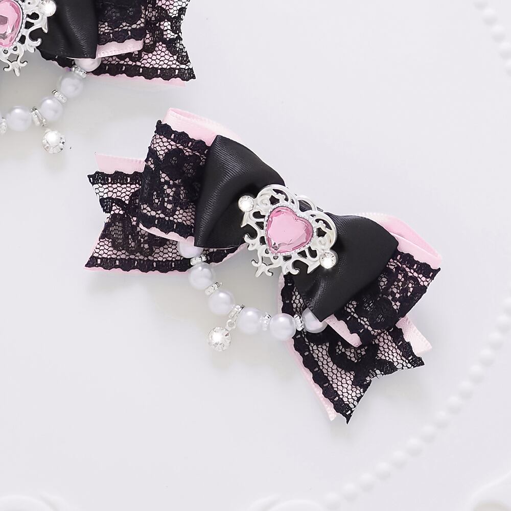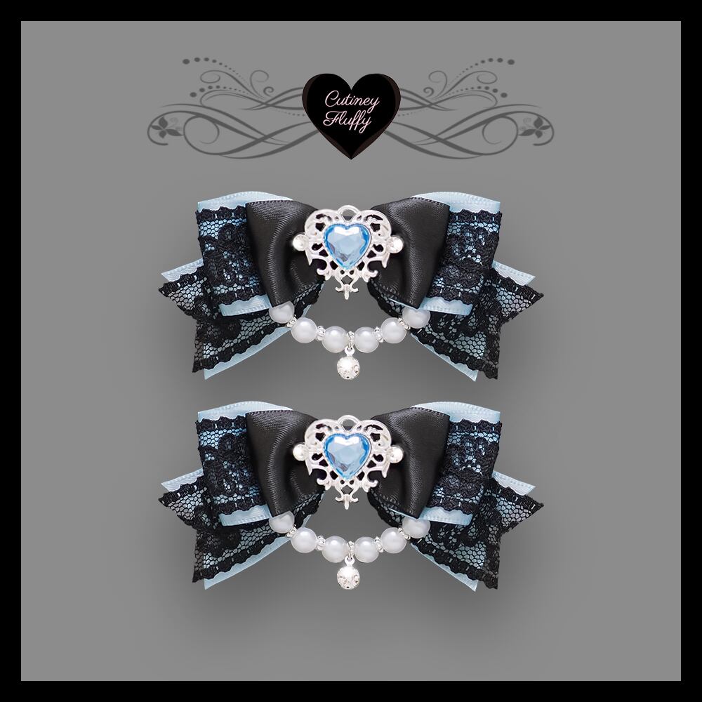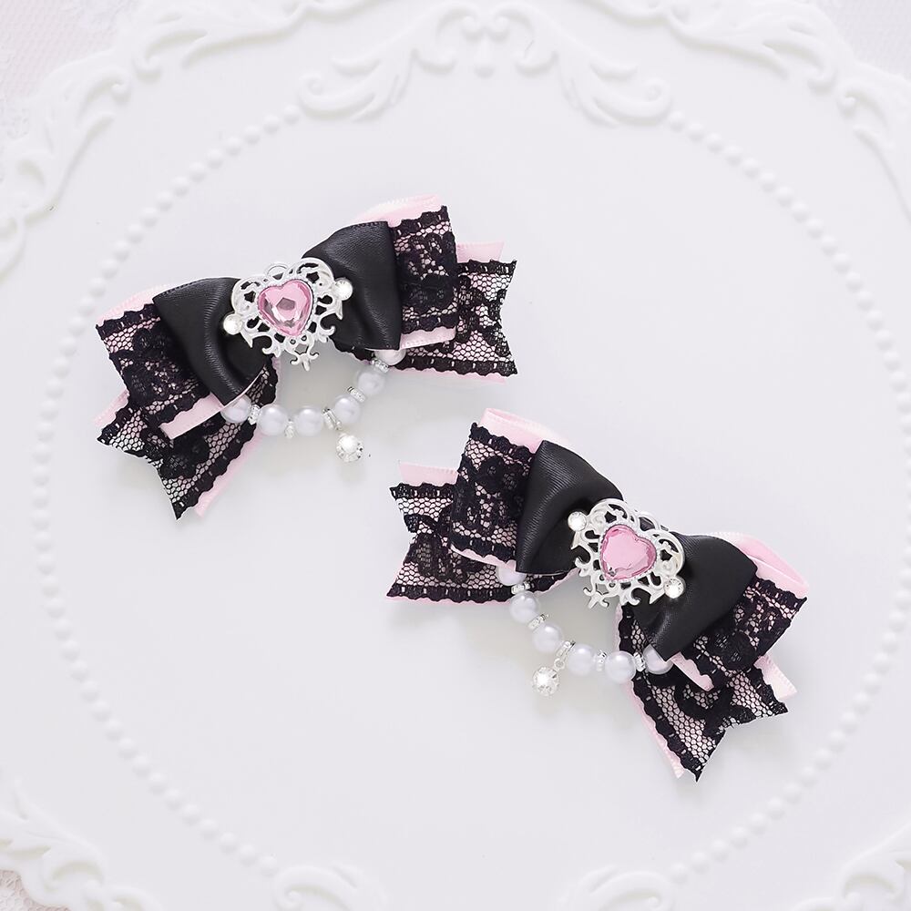 ヘアクリップ リボン 量産型 ロリータ 地雷 ゴスロリ 推しカラー 黒 パール ハート 卒業式 入学式 コンカフェ ピンク 水色 紫 黄色 緑 オレンジ