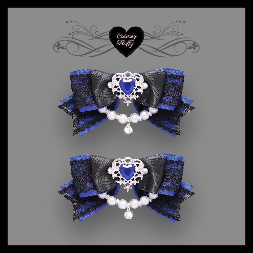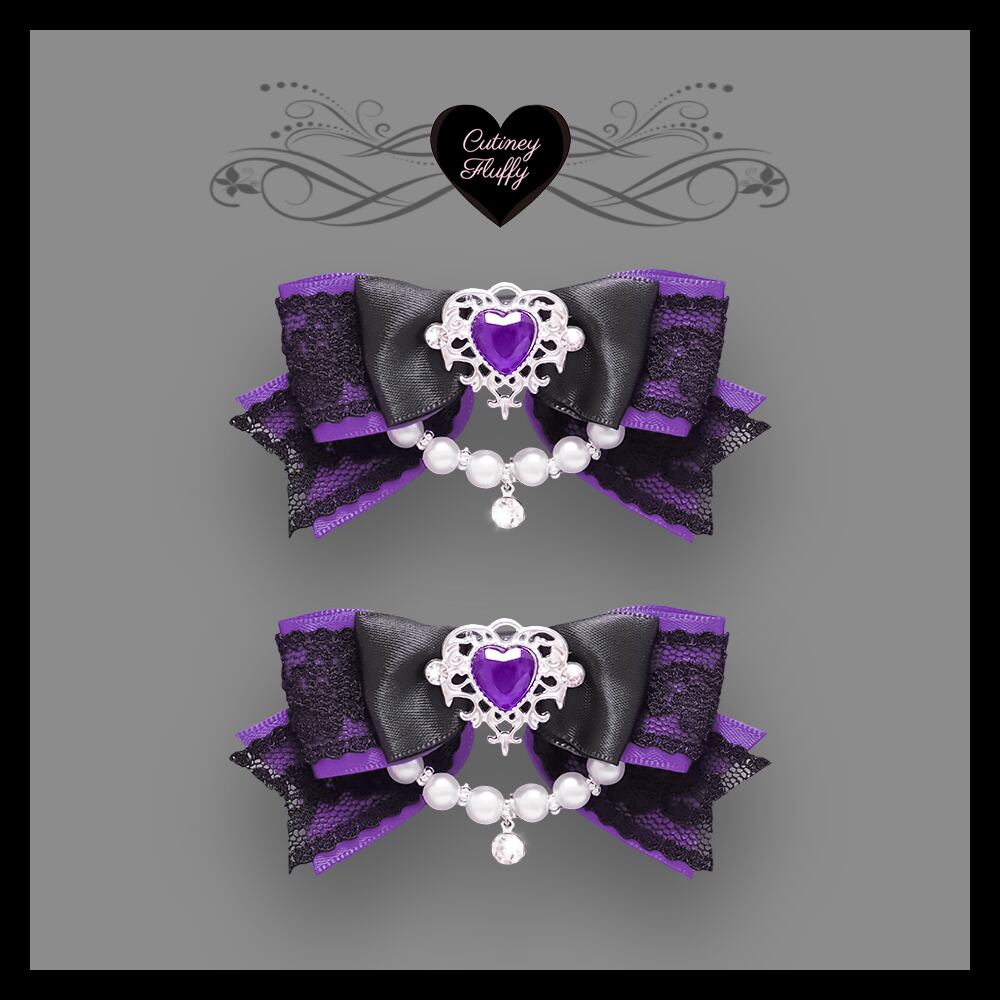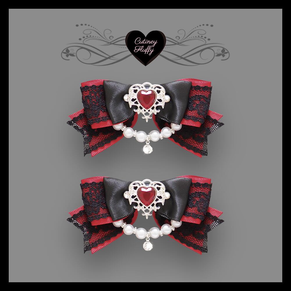ヘアクリップ リボン 量産型 ロリータ 地雷 ゴスロリ 推しカラー 黒 赤 レッド 紫 パープル 青 ブルー パール ハート 卒業式 入学式 コンカフェ