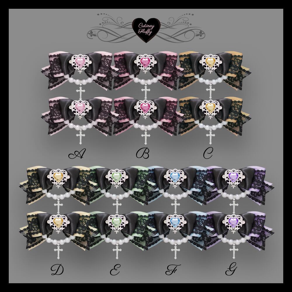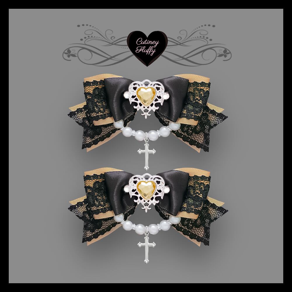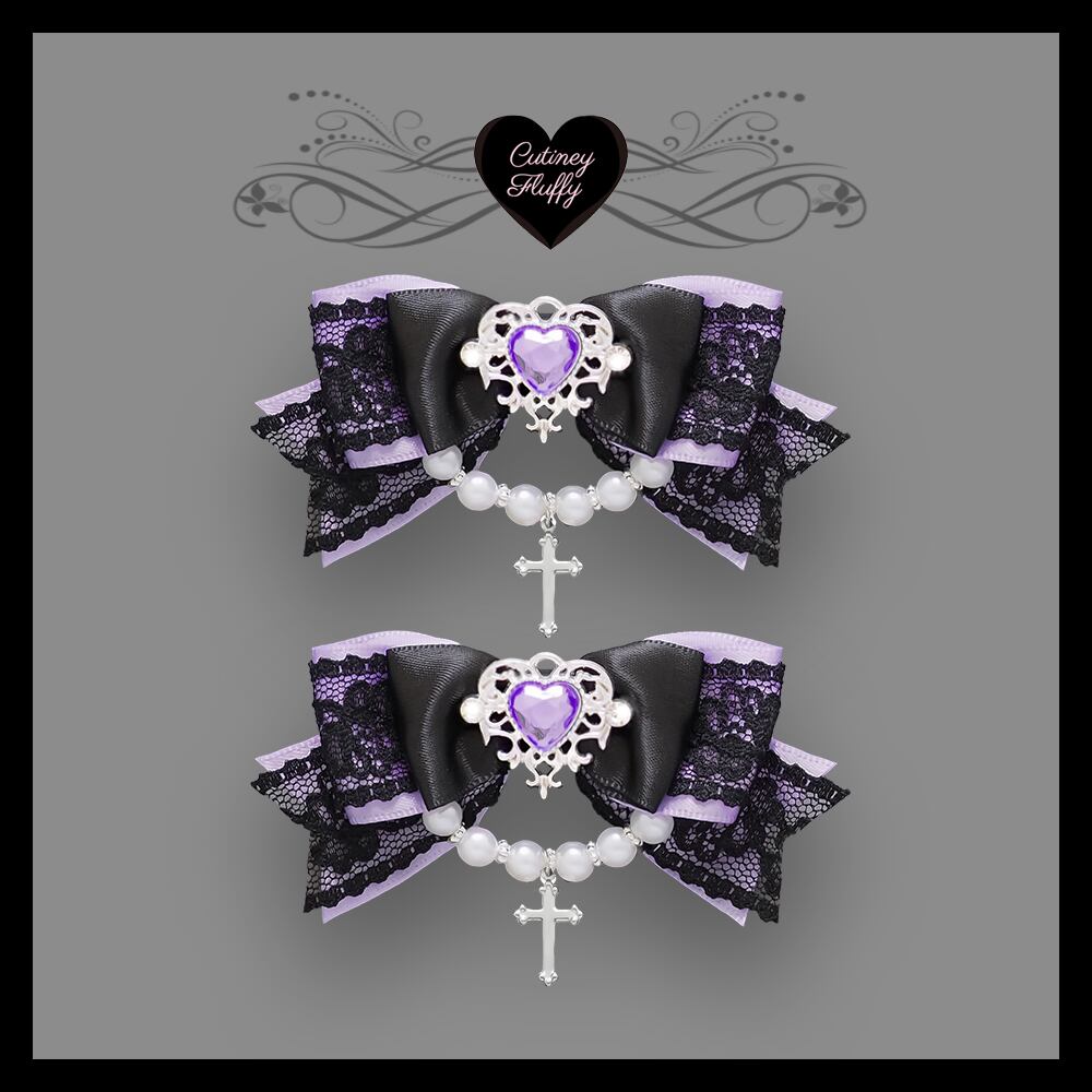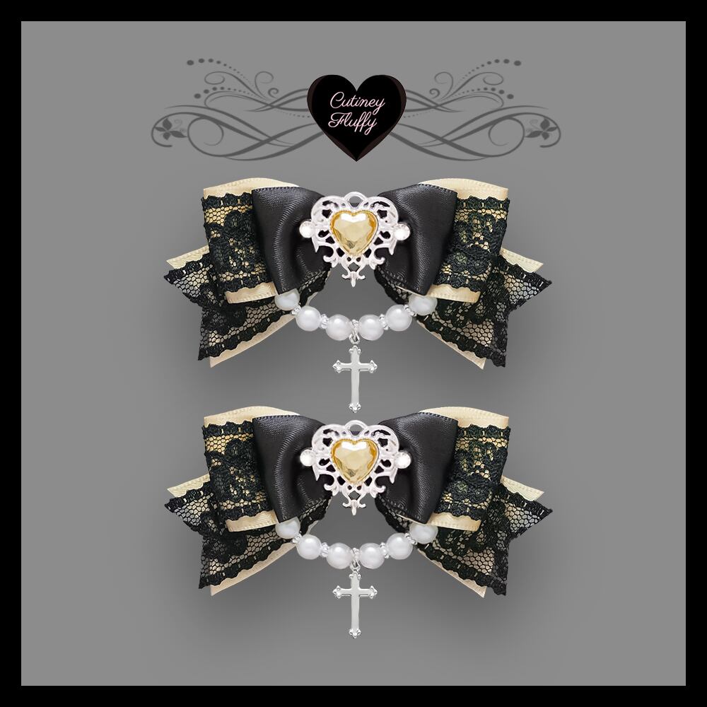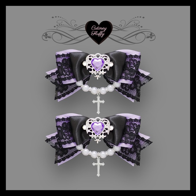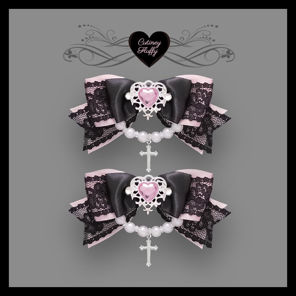 ヘアクリップ リボン 十字架 量産型 ロリータ 地雷 ゴスロリ 推しカラー 黒 パール ハート 卒業式 入学式 キッズ