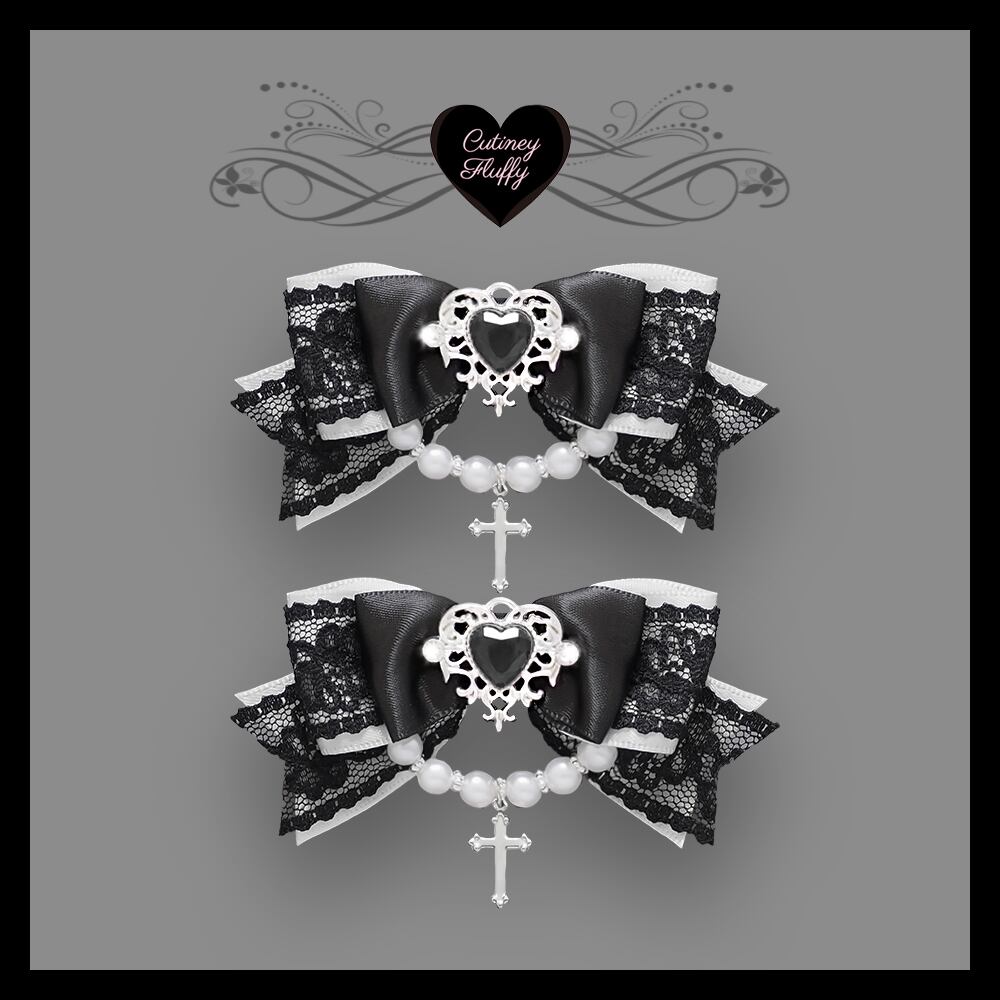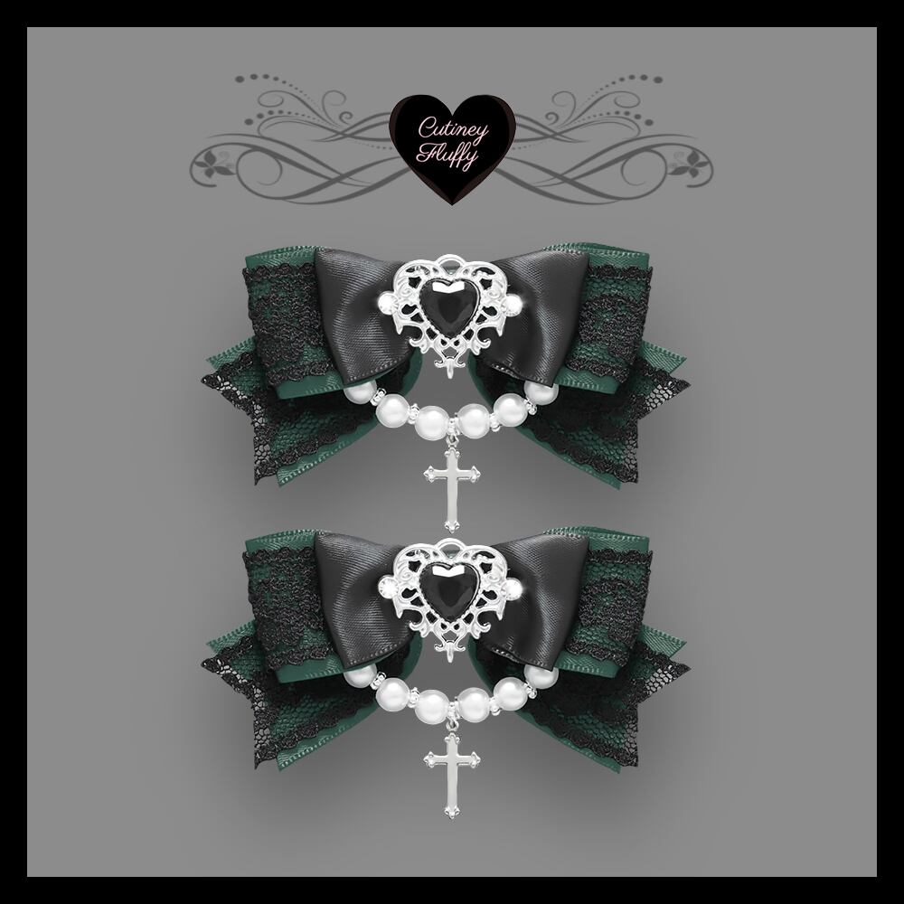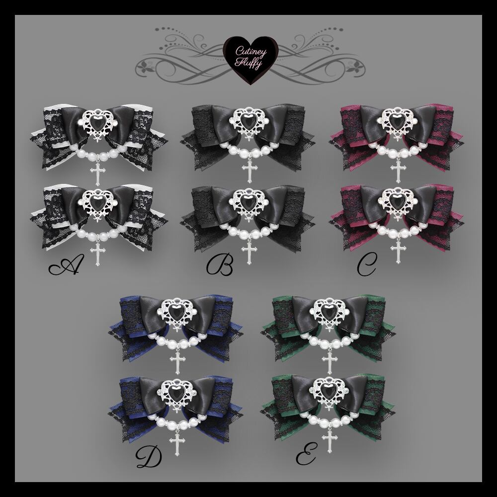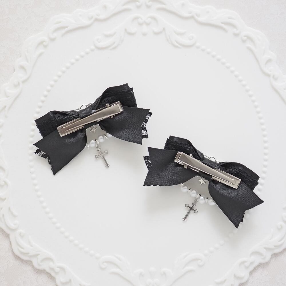 ヘアクリップ 十字架 量産型 ロリータ 地雷 ゴスロリ 推しカラー 黒 白 ボルドー ネイビー グリーンパール ハート 卒業式 入学式 コンカフェ