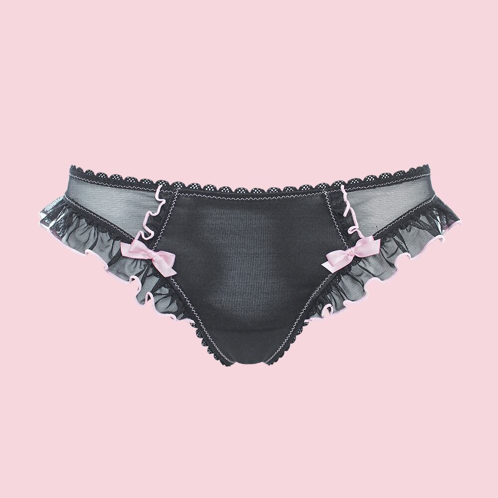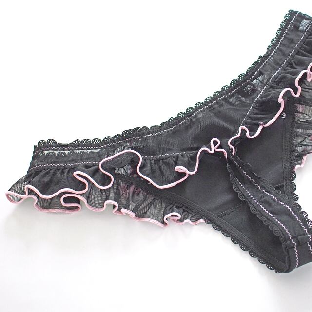 ビターなブラックに甘いピンクのフリルを組み合わせたランジェリーシリーズです。