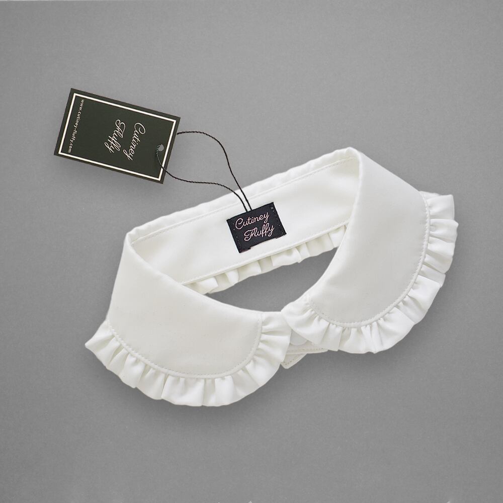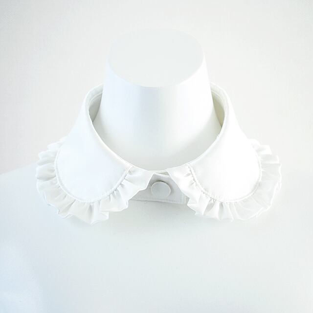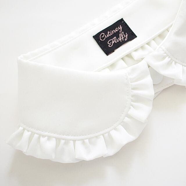 フリルをたっぷり施したサテンの丸襟です。