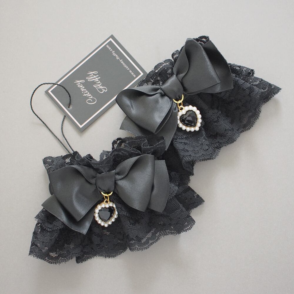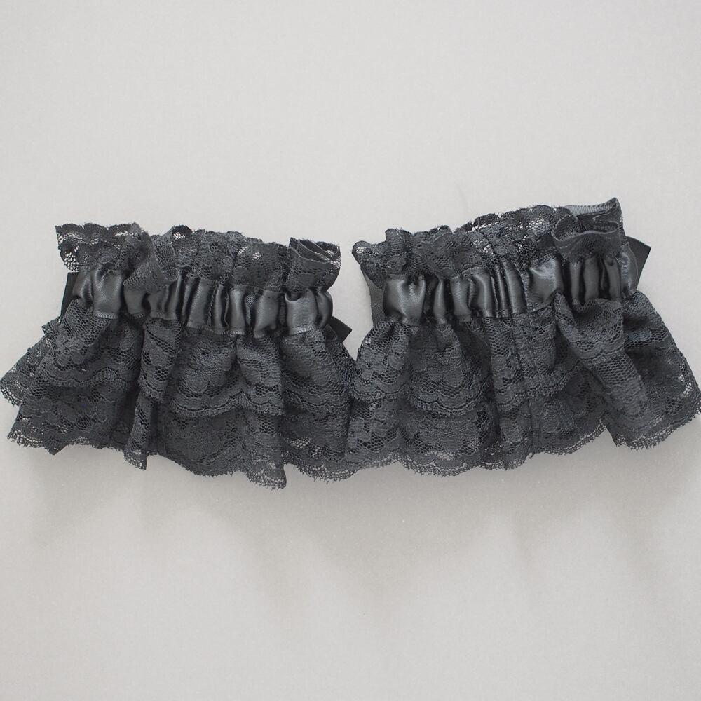 お袖留め フリル レース カフス ハート ビジュー ブラック