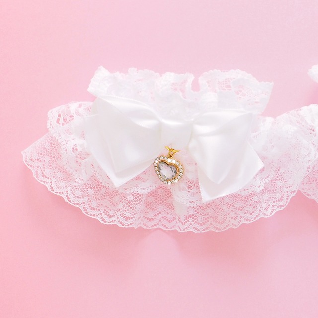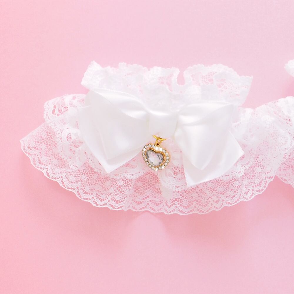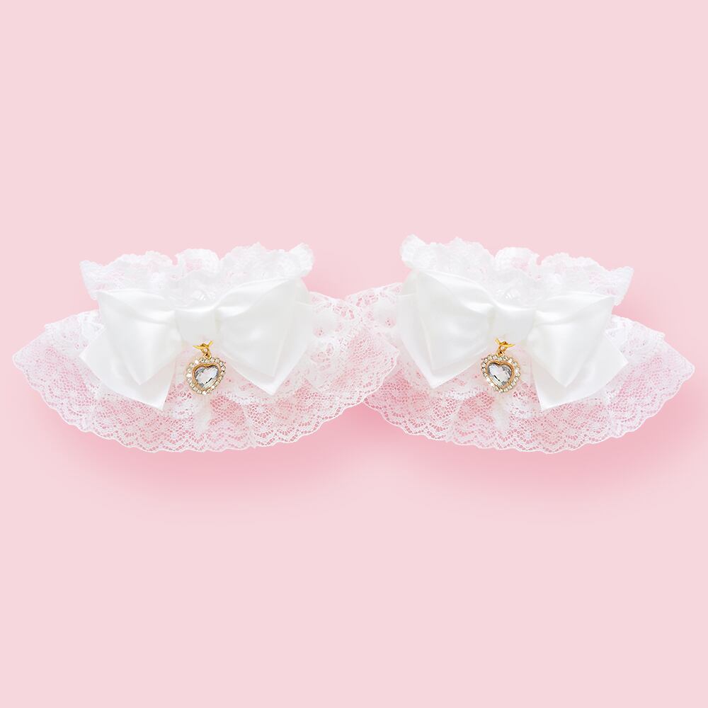 お袖留め フリル ドットレース カフス ハート ビジュー ホワイト
