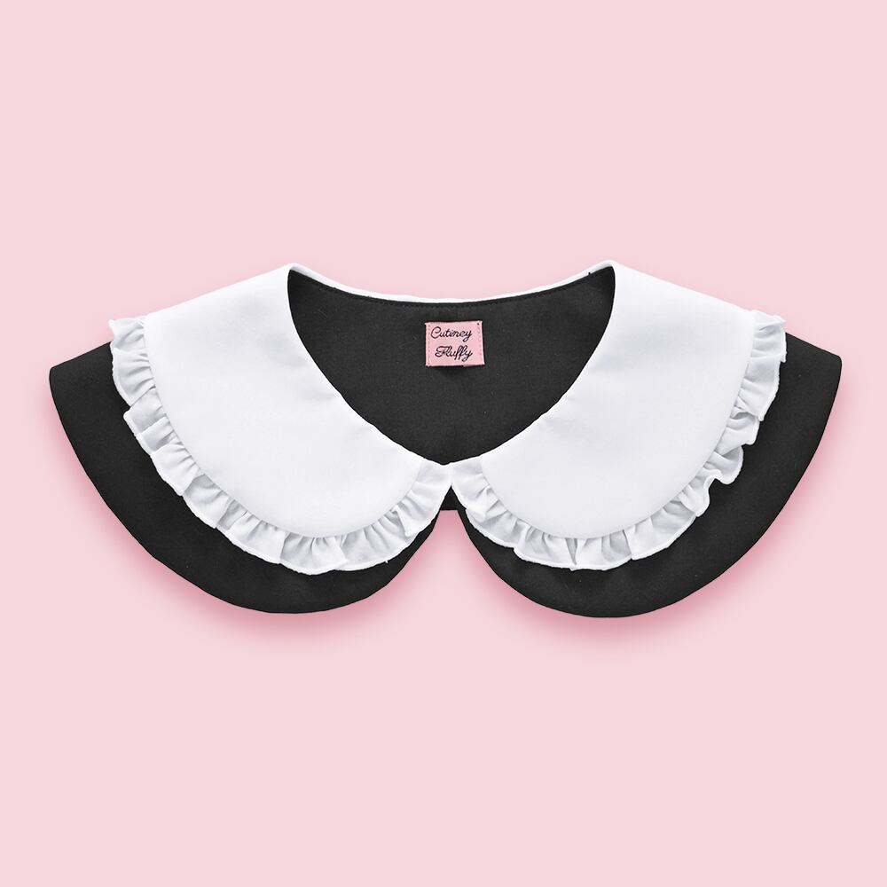 付け襟 つけえり つけ衿 つけ衿 フラットカラー 丸襟 フリル レース コットン 黒 ブラック 量産型 メイド服 メイド ゴスロリ ゴシック ロリータ ハロウィン 白 地雷