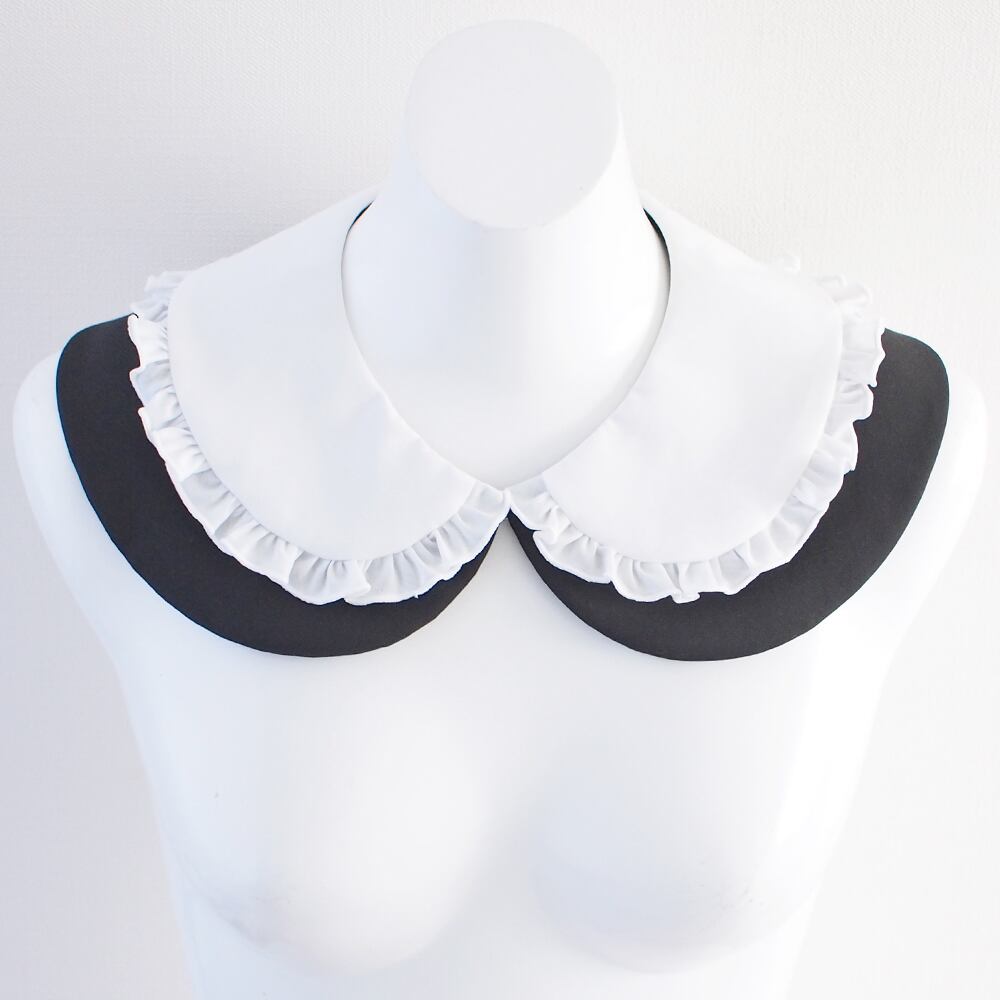 ブラックとホワイトの2枚襟ですので2枚目のブラックの襟を服の中に入れていただくと