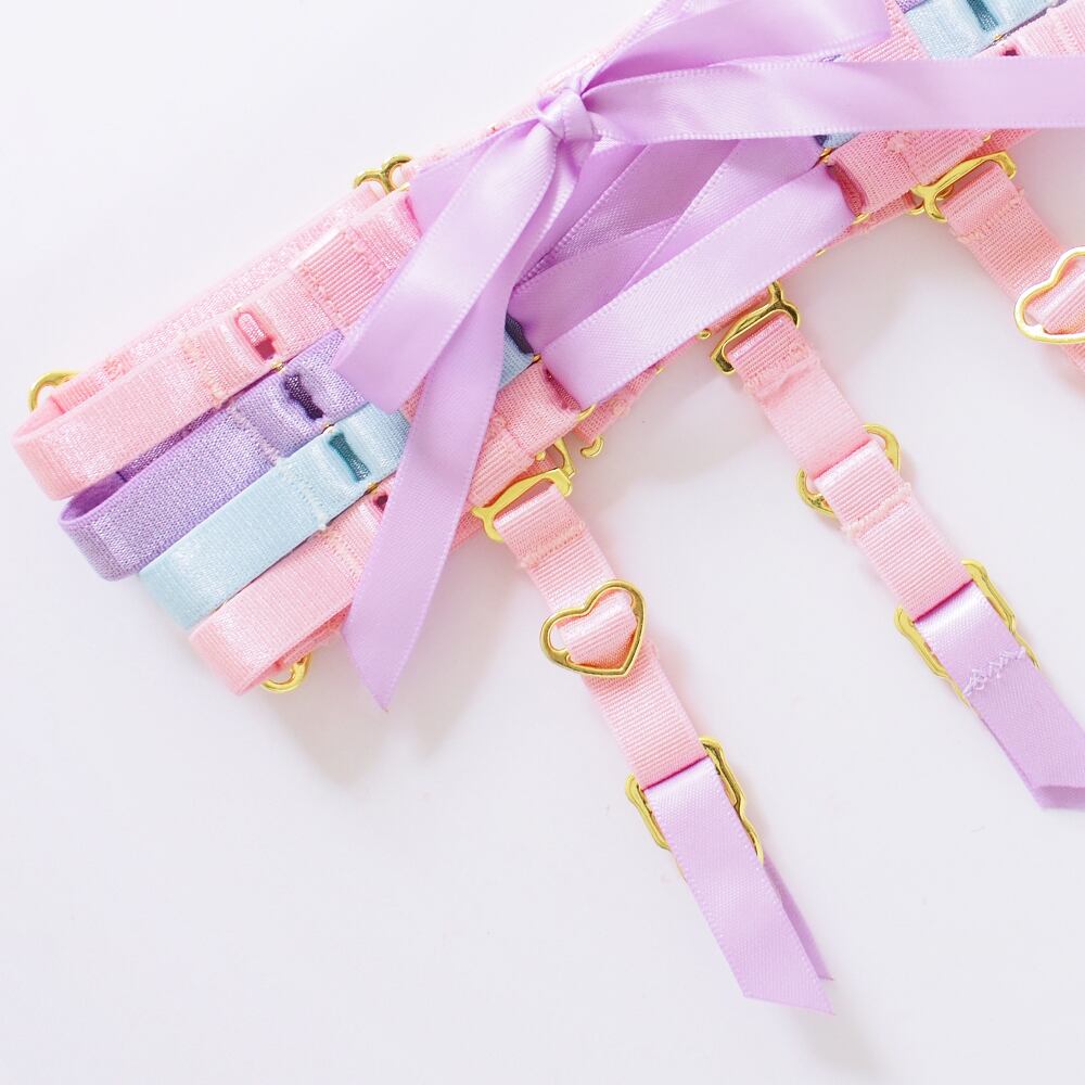 ♡Sweet Hert Laceup Garter♡ ハーネス レースアップ レッグ ガーター ベルト パステルカラー ソックス リングガーター ランジェリー