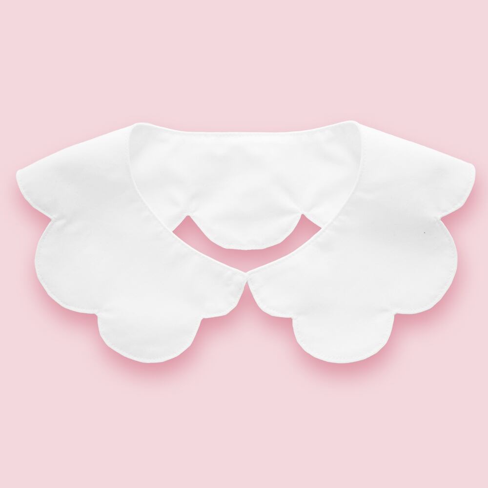 甘いスカラップフリルを施したホワイトのフラットカラーです。