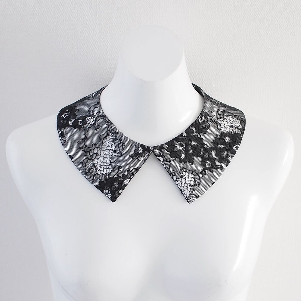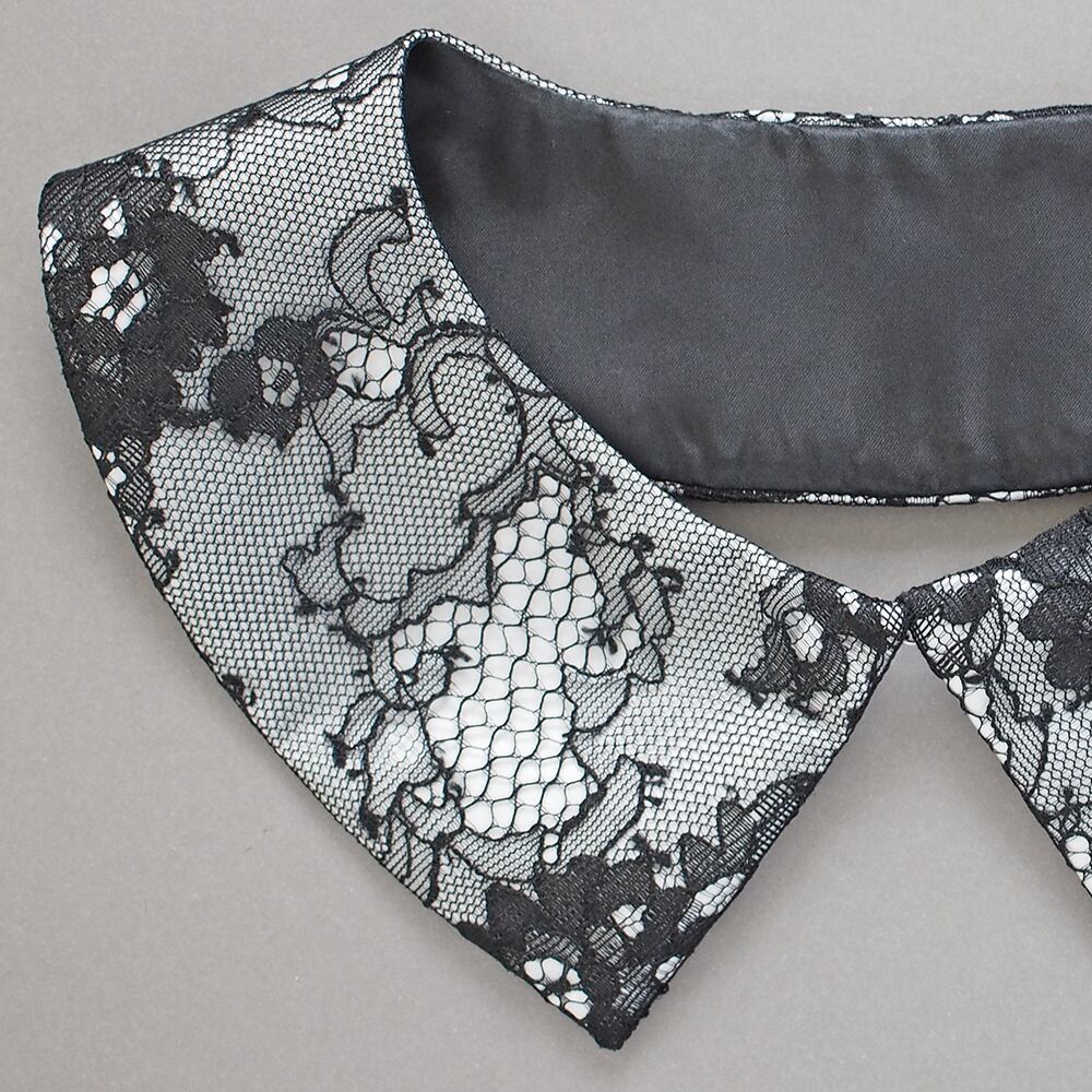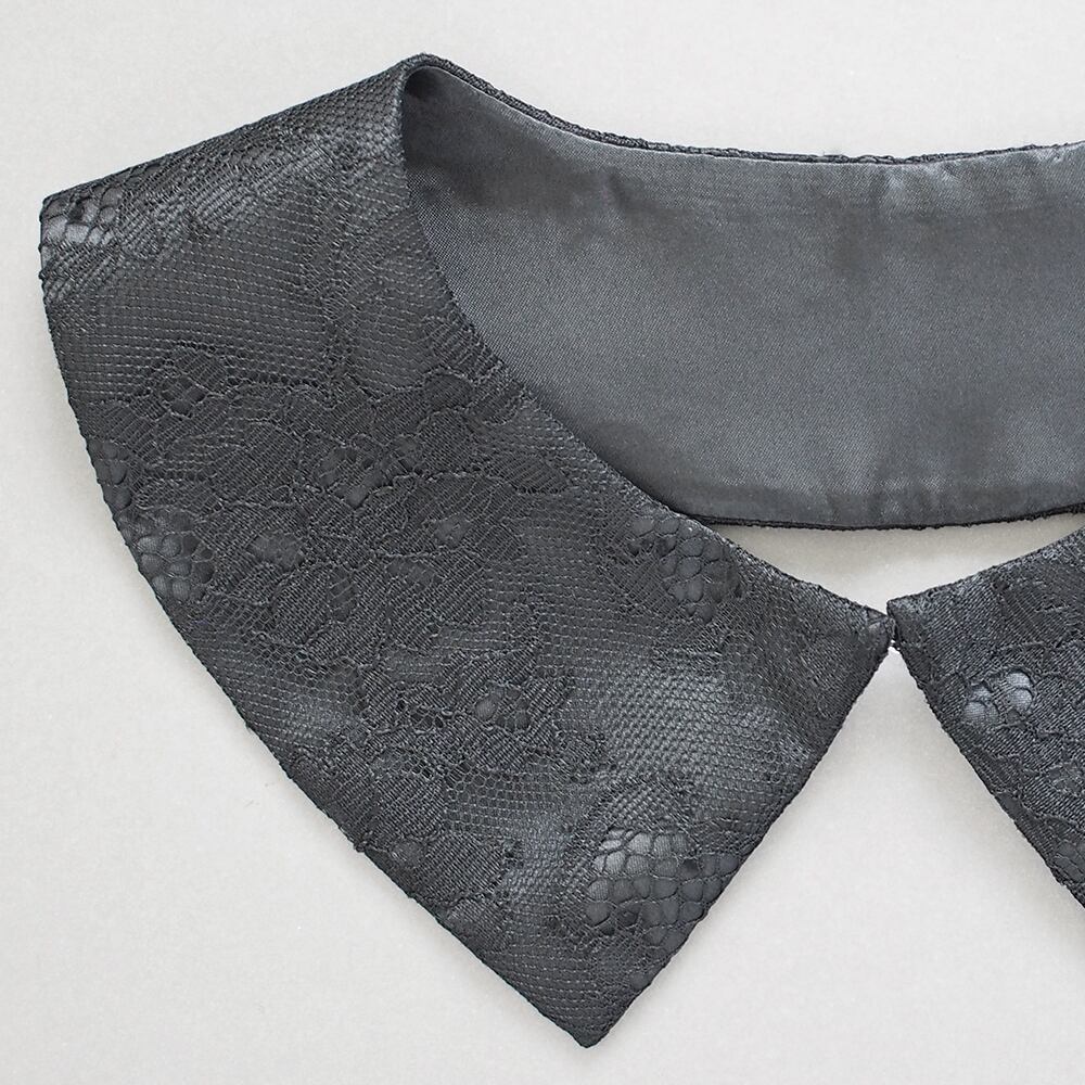 ♡Crassic Collar Lace♡ つけ襟 付け襟 フラットカラー 角襟 スクエアカラー レースサテン クラシック コットン 黒 白