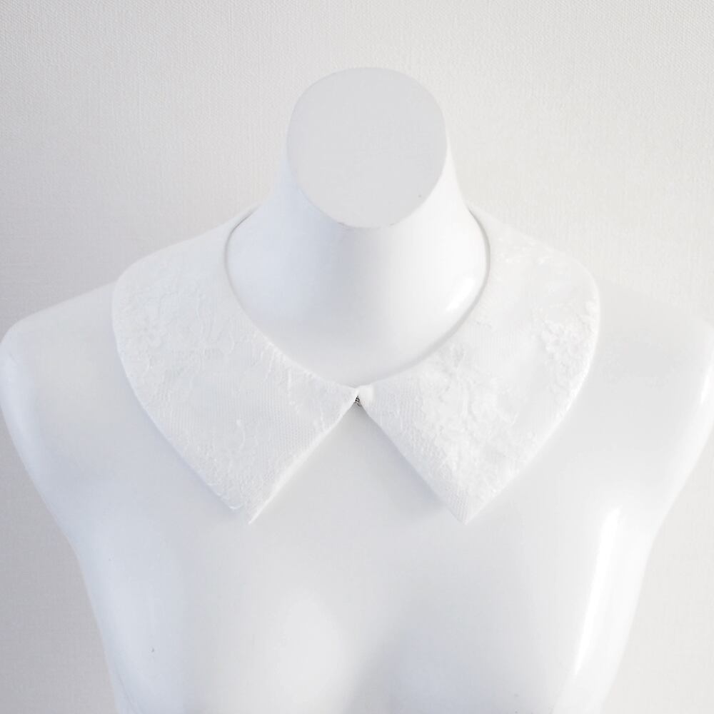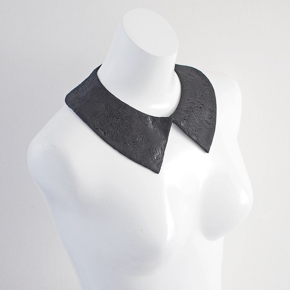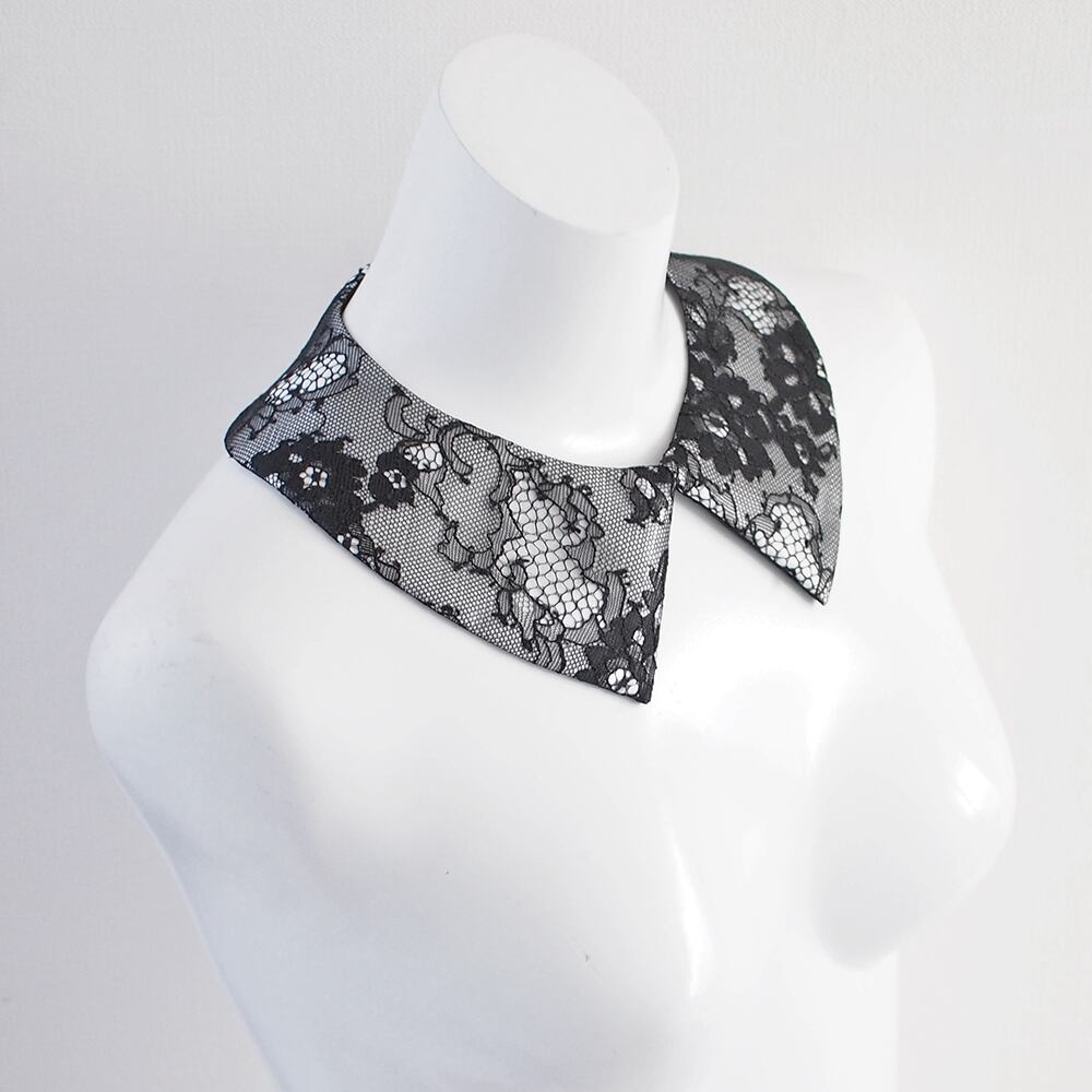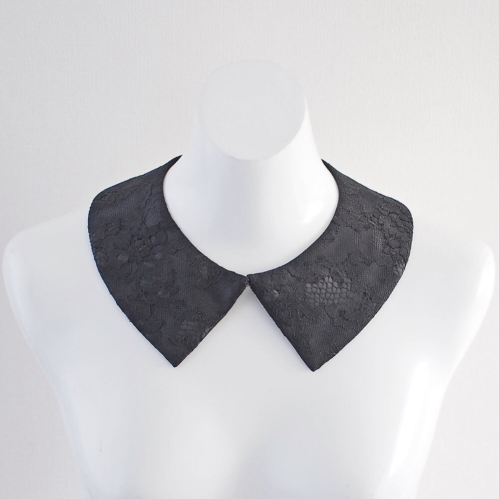 ♡Crassic Collar Lace♡ つけ襟 付け襟 フラットカラー 角襟 スクエアカラー レースサテン クラシック コットン 黒 白