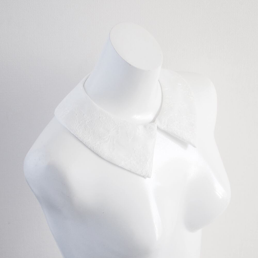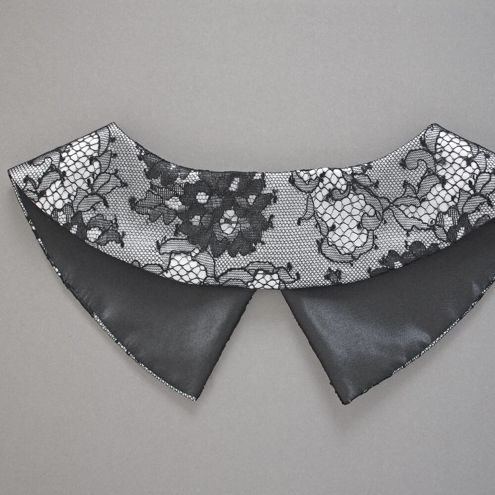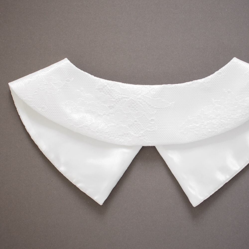 つるつるのサテン生地に繊細なレースを重ねたホック留の付け襟です。