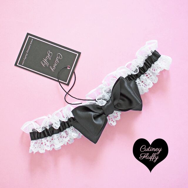 ♡French Maid Lace Garter Ring♡ ガーターリング ホワイトレース ブラックリボン