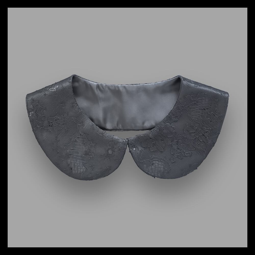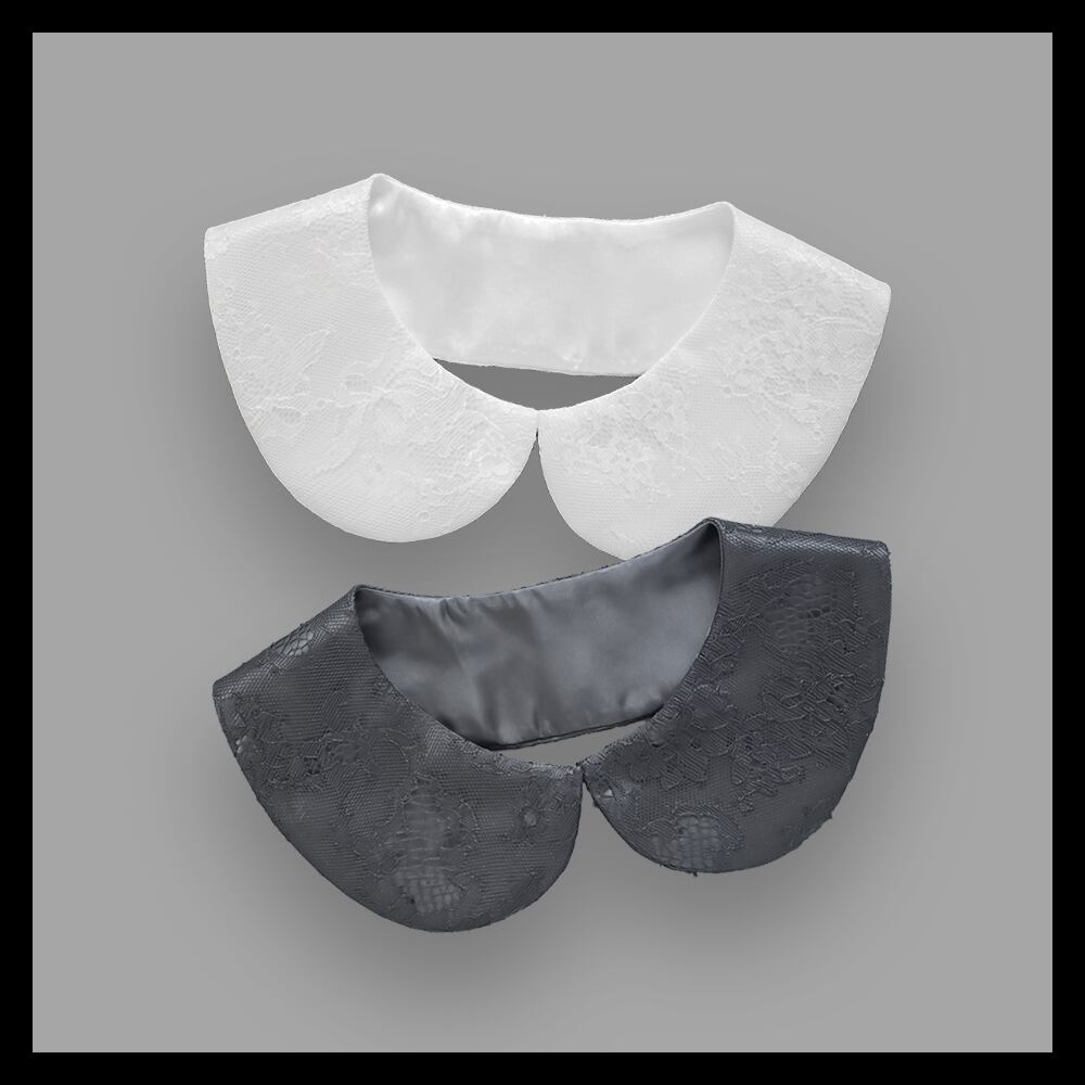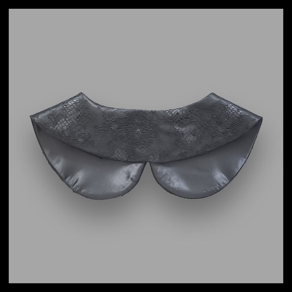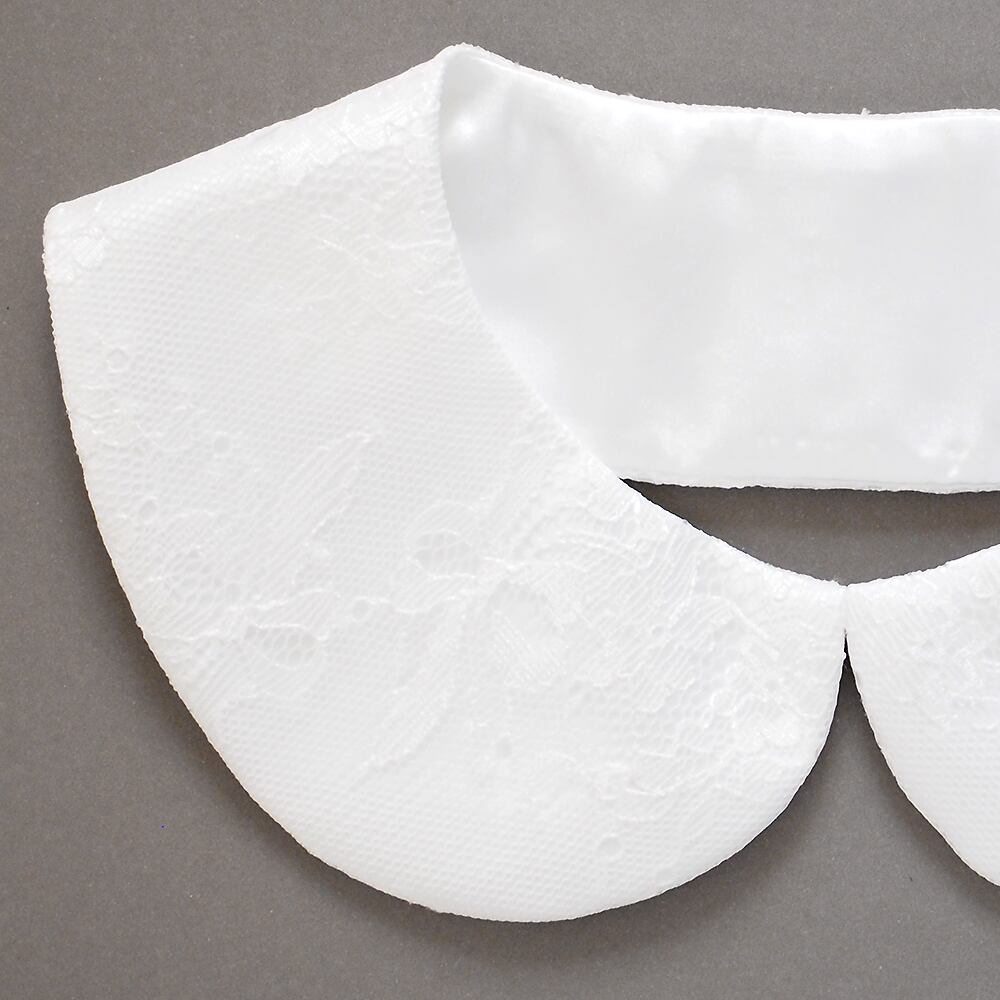 滑らかなサテン生地に繊細なレースを重ねたホック留の付け襟です。