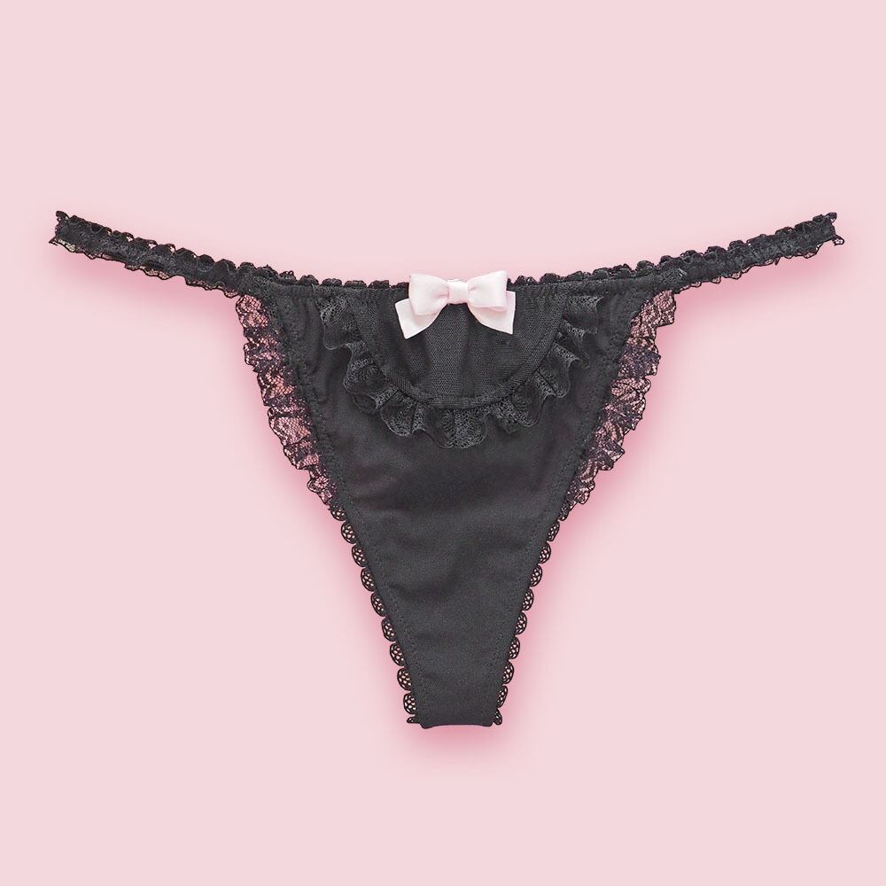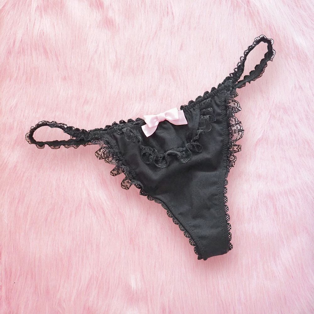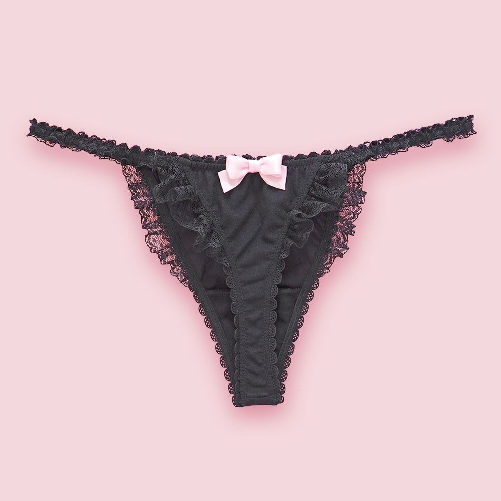 Tバック ショーツ シアー ランジェリー ブラック レース フリル 黒 ピンク sexy gスト ブラショーツ ロリータ ゴスロリ ゴシック フェティッシュ 量産型 地雷 サブカル
