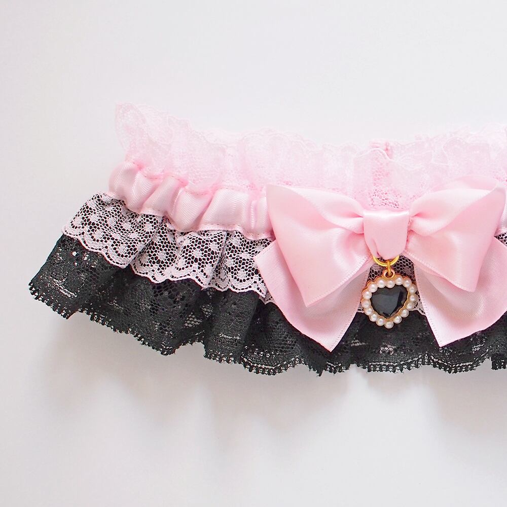 ♡Heart Charm♡ハートチャーム リングガーター ブラックレース ベビーピンク