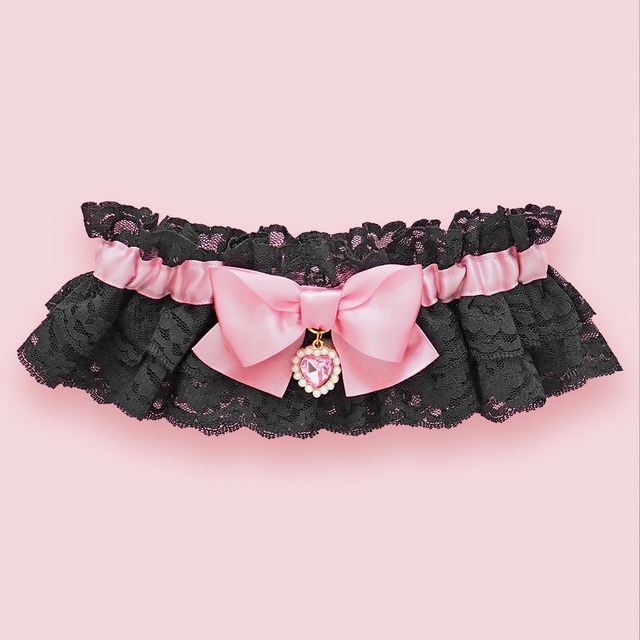 ♡Heart Charm♡リング ガーター ハートチャーム レース ブラック 黒 ピンク