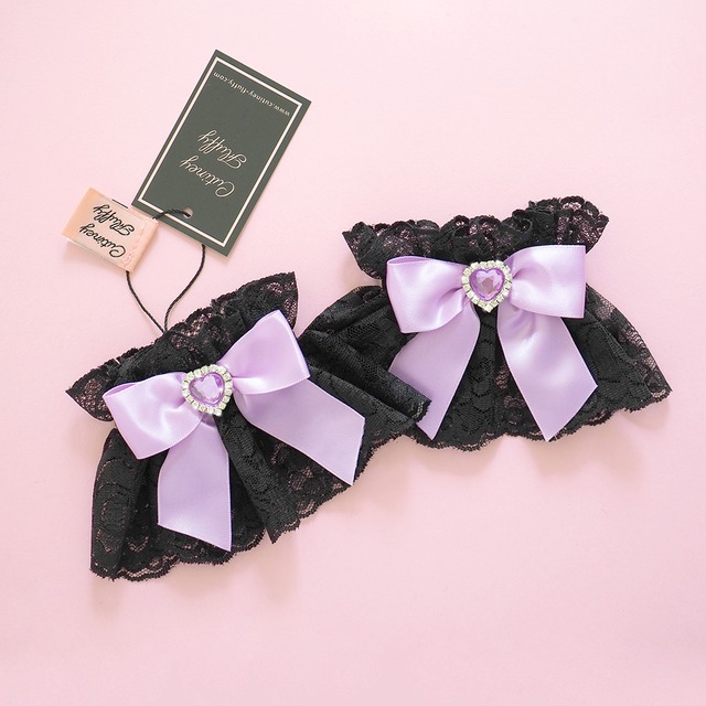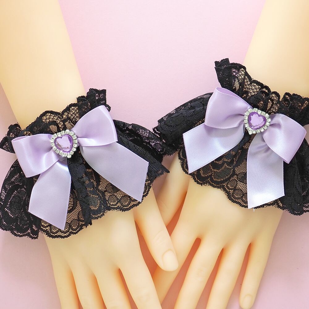付け袖 付けカフス お袖留め お袖とめ お袖どめ カフス 袖 ハロウィン メイド 量産型 サブカル ロリータ ゴスロリ ゴシック レース 地雷 フリルカフス レースカフス ブレスレット ブレス レース 病みかわいい ハート ラインストーン 黒 ブラック 紫 パープル