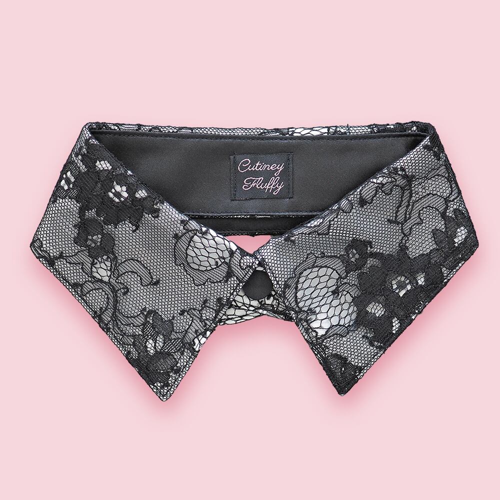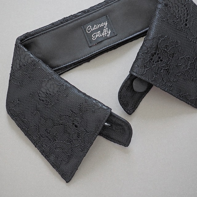 滑らかな光沢のサテン生地に繊細なレースを重ねたクラシカルな付け襟です。