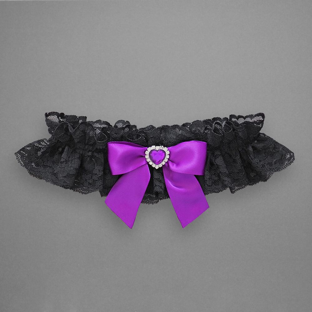 ♡Heart bijoux garter♡ハートビジュー リングガーター ブラックレース パープルリボン