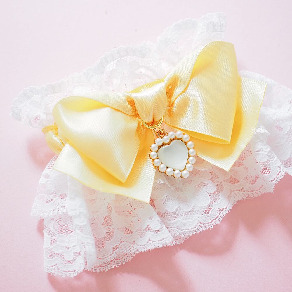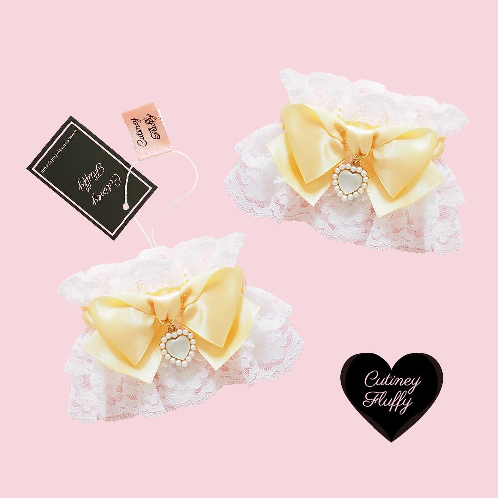 ♡Frill Lace Cuffs ♡お袖留め フリル レース カフス ハート ビジュー ホワイトxパステルイエロー