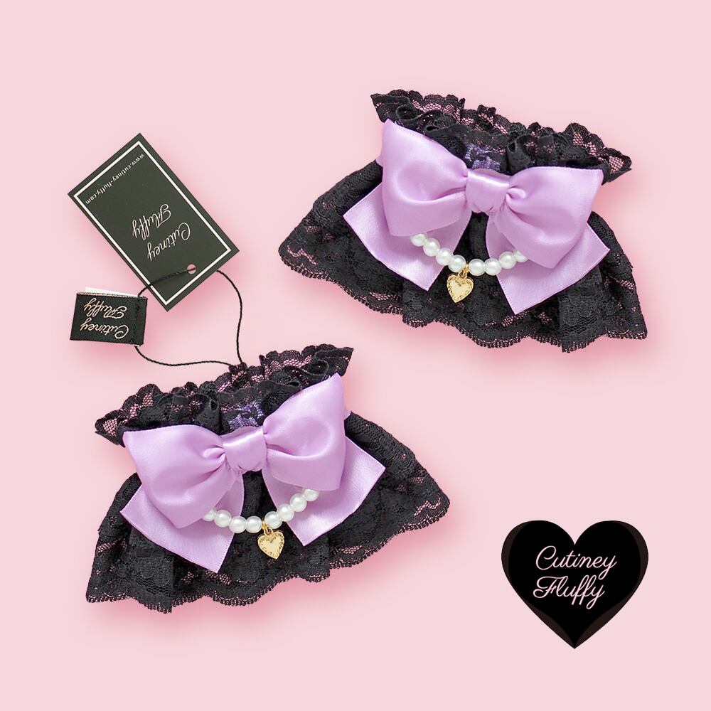 ♡Classc Pearl Cuffs♡お袖留め 付けカフス パール ハートゴールドチャーム ブラックレース ラベンダー