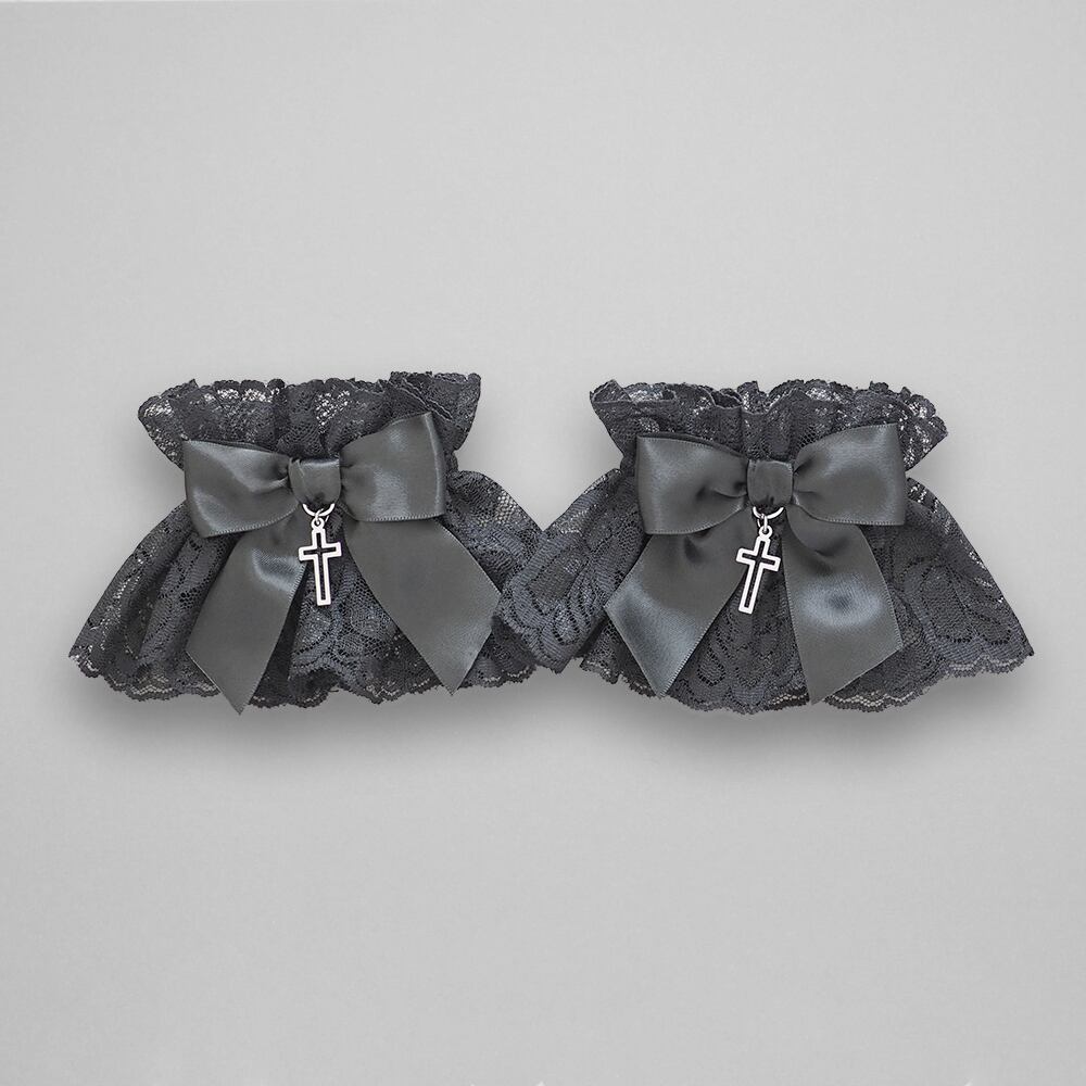 付け袖 付けカフス お袖留め お袖とめ お袖どめ カフス 袖 手首 ハロウィン メイド 量産型 サブカル ロリータ ロリィタ ゴスロリ ゴシック レース 地雷 コンカフェ フリルカフス レースカフス ブレスレット ブレス レース 病みかわいい クロス 十字架 チャーム ラインストーン 黒 ブラック シルバー 白
