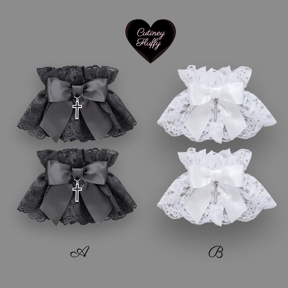お袖留め 付け袖 付けカフス クロスチャーム 十字架 地雷 ブラック ホワイト