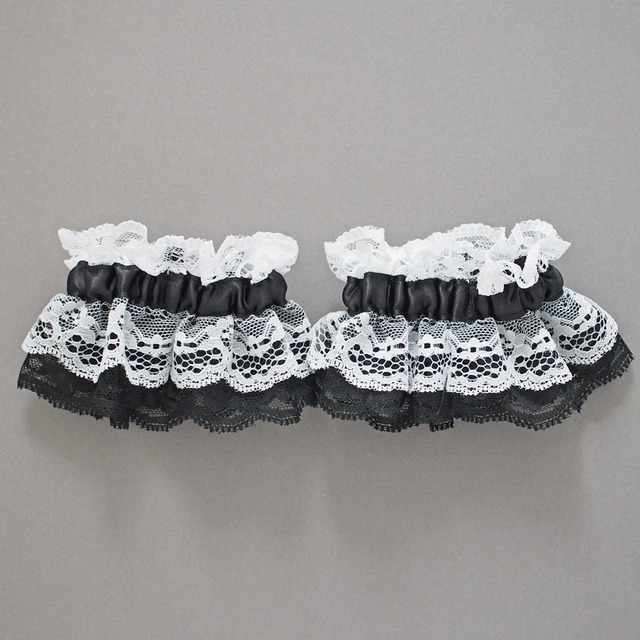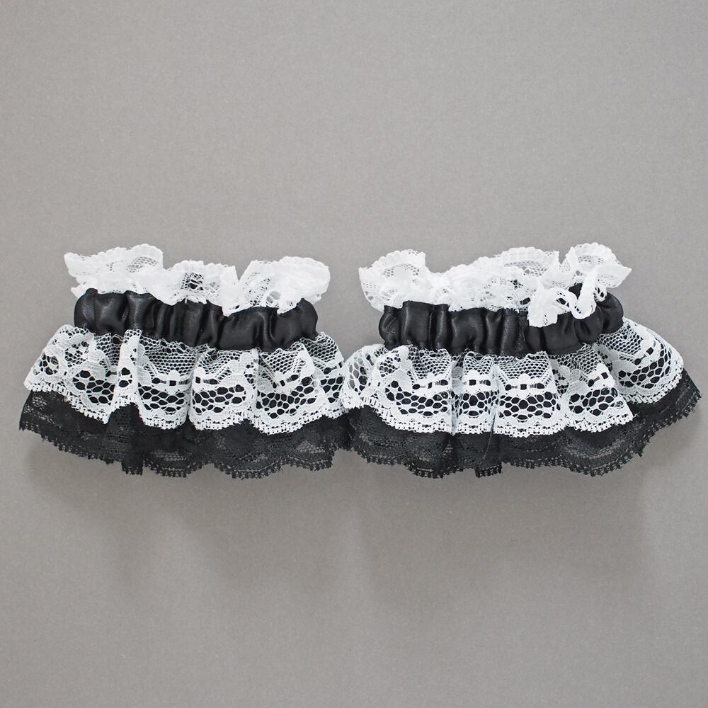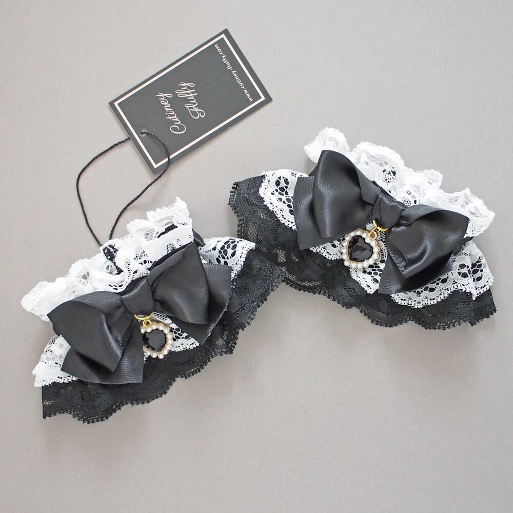お袖留め 付け カフス 付け袖 ハートチャーム ダブルレース ブラック ホワイト 白 黒