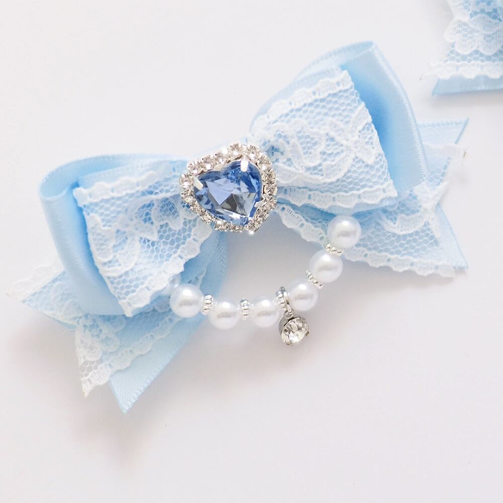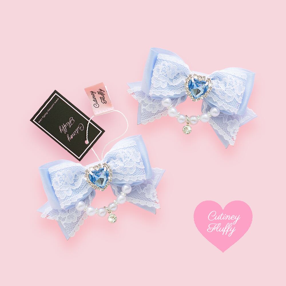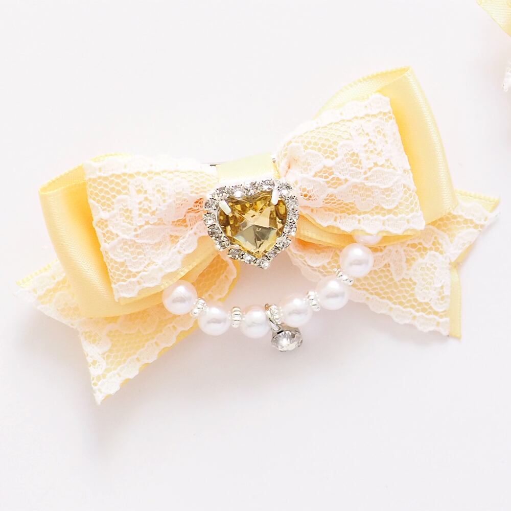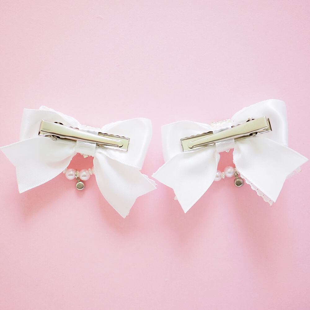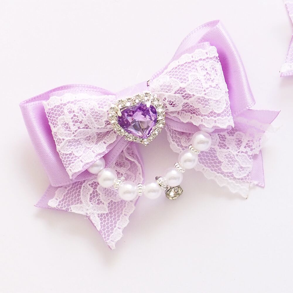 量産型 推し色 地雷 ハートビジュー パール飾り ヘアクリップ ヘアリボン 2個セット