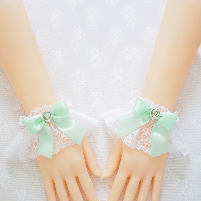 付け袖 付けカフス お袖留め お袖とめ お袖どめ カフス 袖 ハロウィン メイド 量産型 サブカル ロリータ ロリィタ 甘ロリ コンカフェ ゴスロリ ゴシック レース 地雷 フリルカフス レースカフス ブレスレット ブレス レース 病みかわいい 推し 白 ホワイト ハート ラインストーン 白 薄紫 ピンク 紫 パープル 水色 ブルー 青