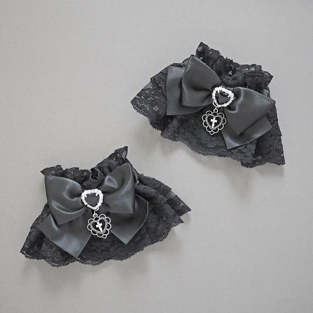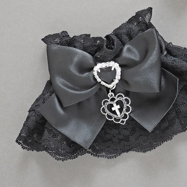 お袖留め 付けカフス ハート クロスチャーム ブラック レース