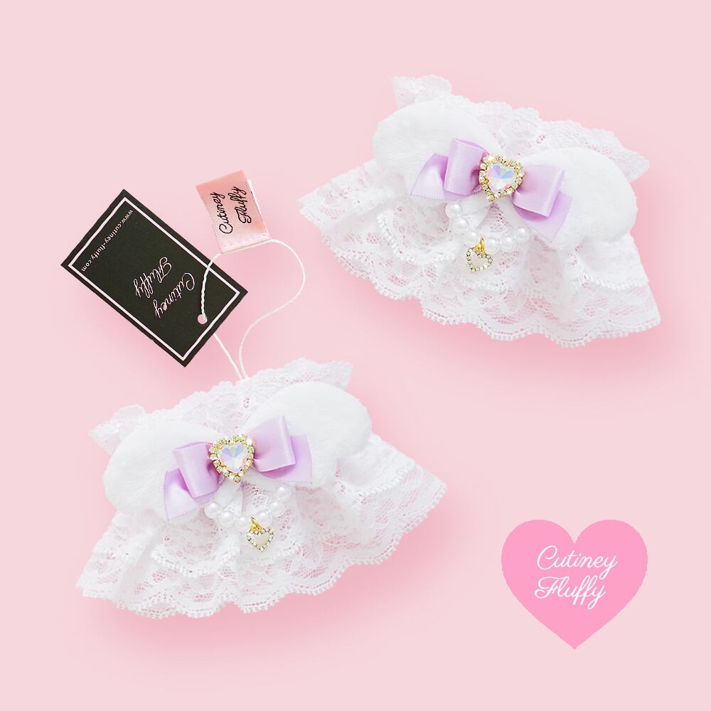 お袖留め 付けカフス エンジェルウイング 天使の羽 ハート ビジュー ラベンダー ホワイト