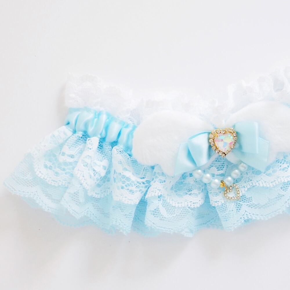 ガーターベルト ガーターリング 靴下留 ブライダル ウエディング キャットガーター リングガーター ランジェリー ソックスガーター レッグガーター ガータートス サムシングブルー ハロウィン ゴールド キラキラ ラインストーン ハート チャーム メイド メイド服 ロリータ ゴスロリ ゴシック コンカフェ 地雷 量産型 天使 羽 天使の羽 エンジェル エンジェルウィング 水色 ブルー 青 白 ホワイト
