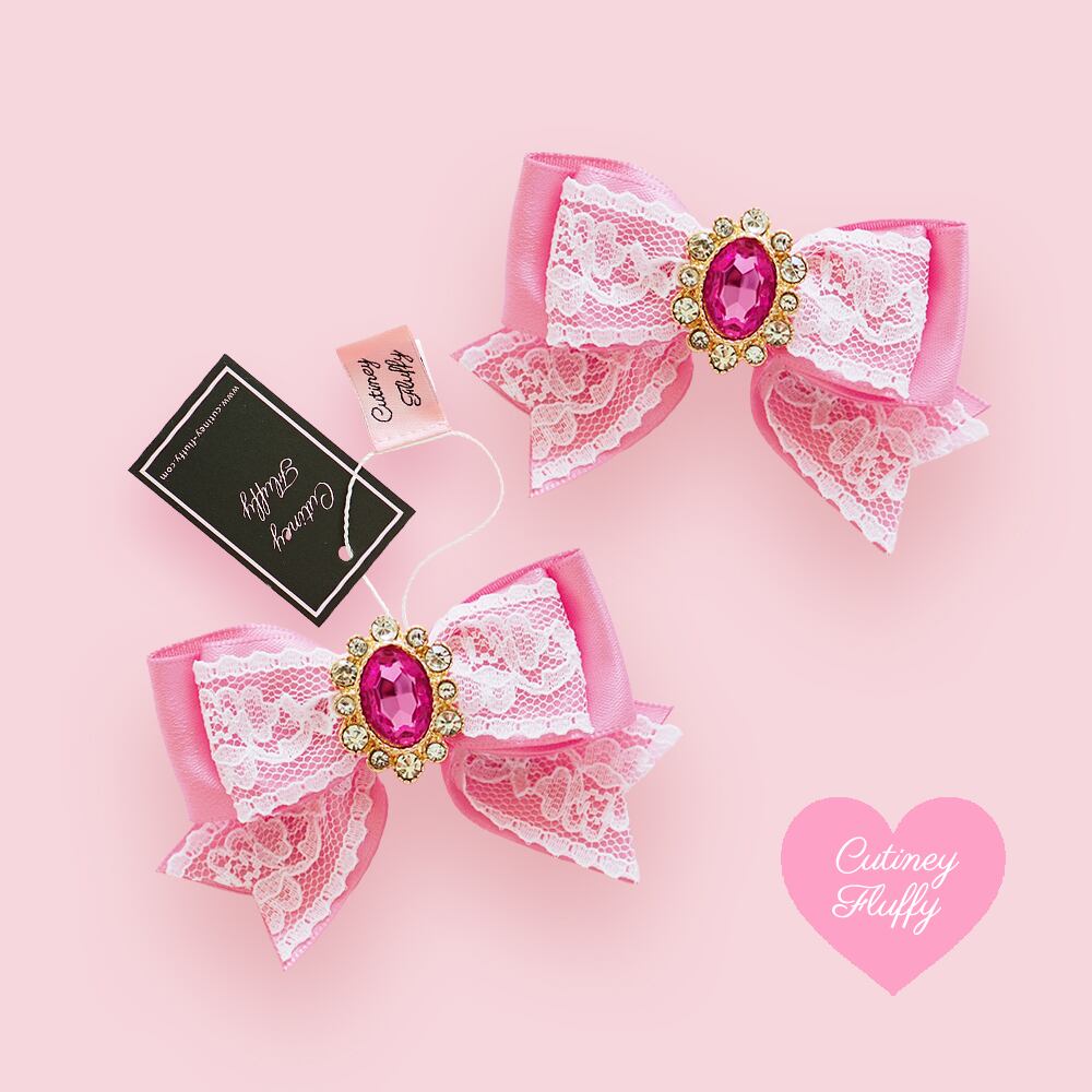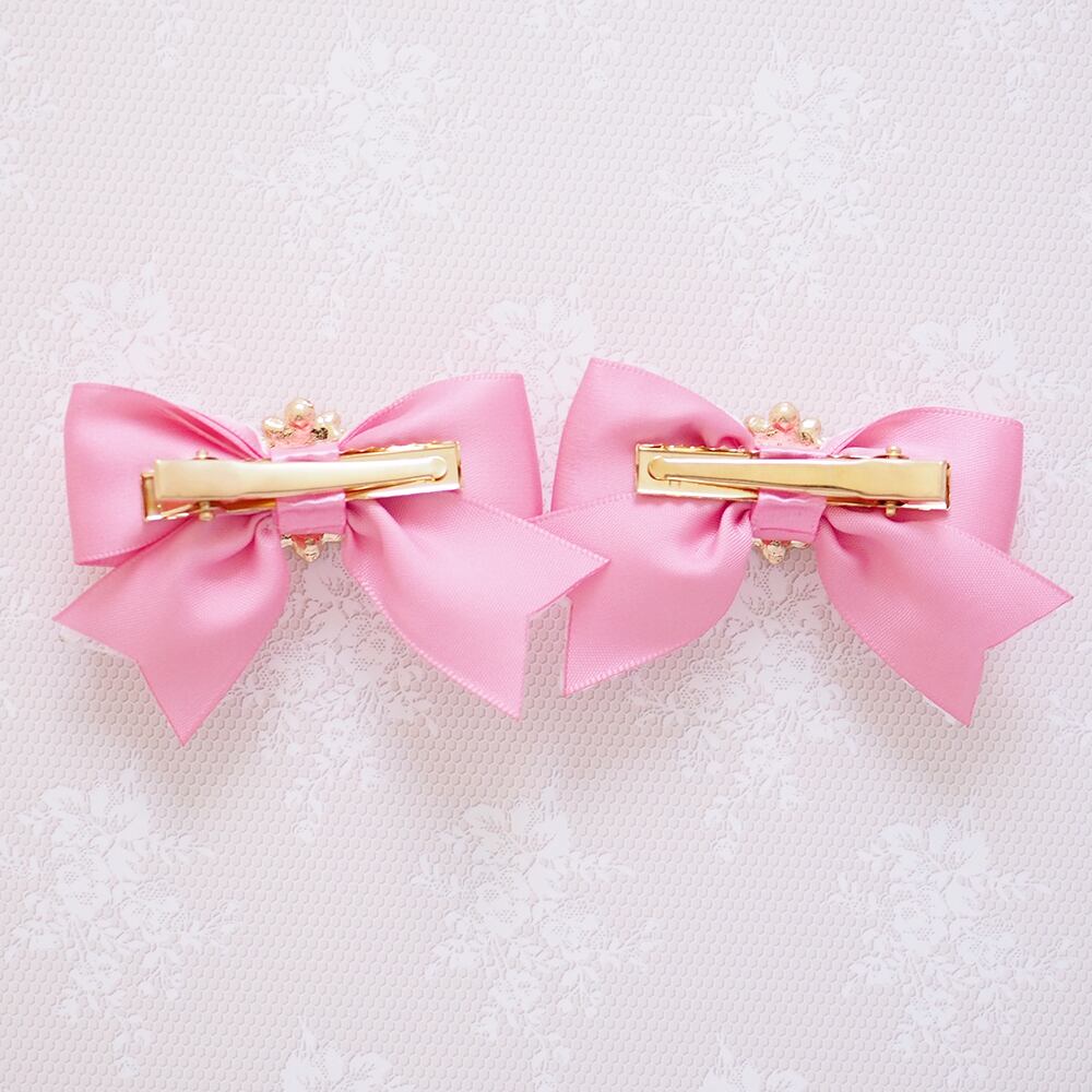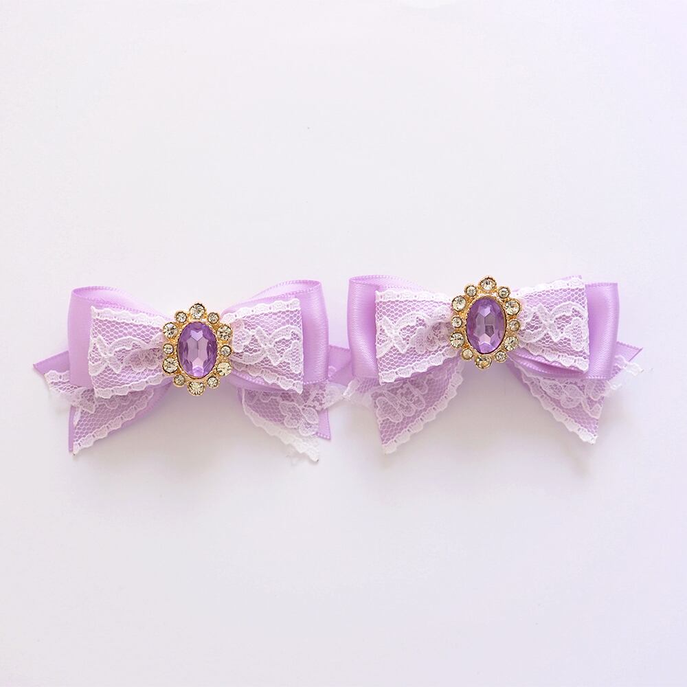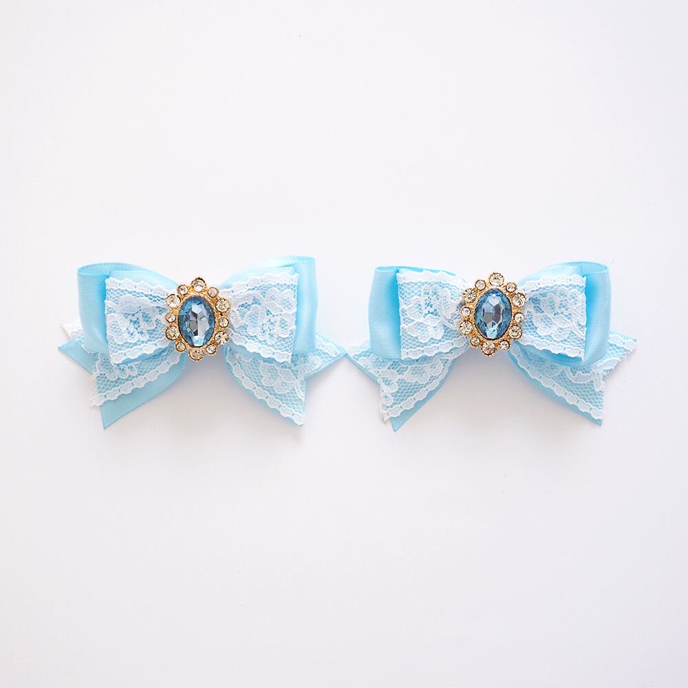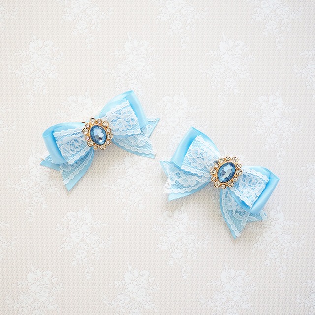 レースリボン ビジュー ヘアクリップ ヘアリボン 2個セット ツインテール