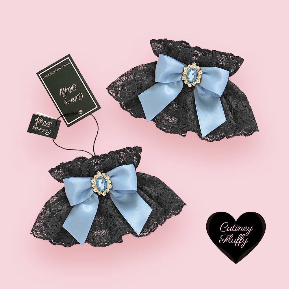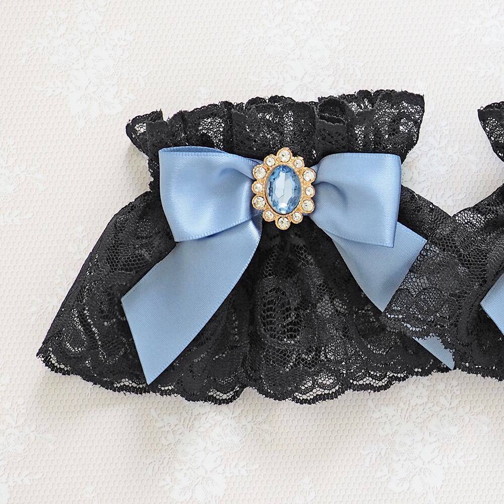 ブラックレースxダスティーブルー(くすみ系暗めの水色です。)