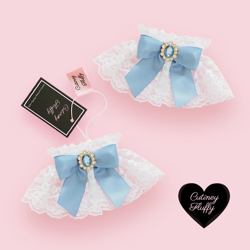 お袖留め 付け カフス ビジュー オフ ホワイト レース ブルー