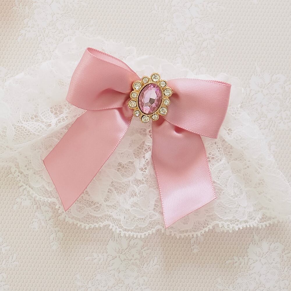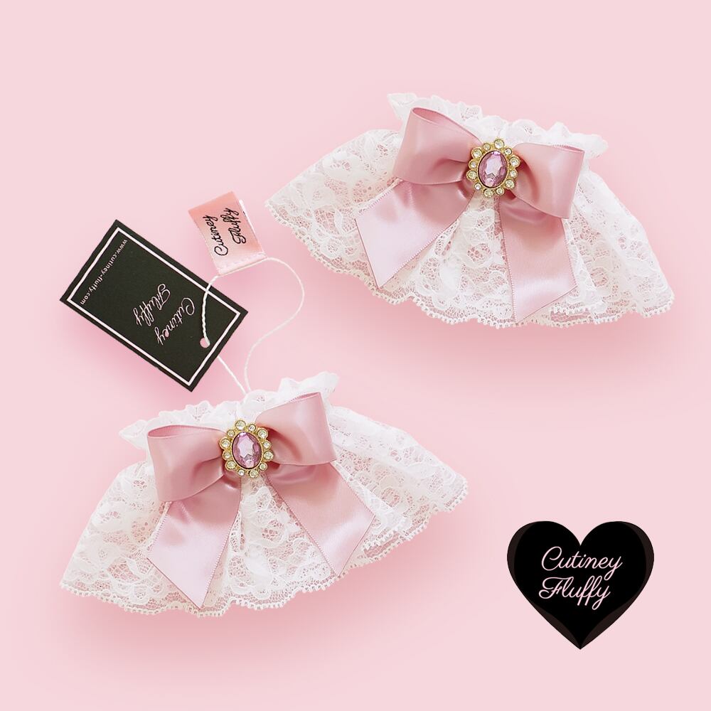 お袖留め 付け カフス ビジュー オフ ホワイト レース ピンク