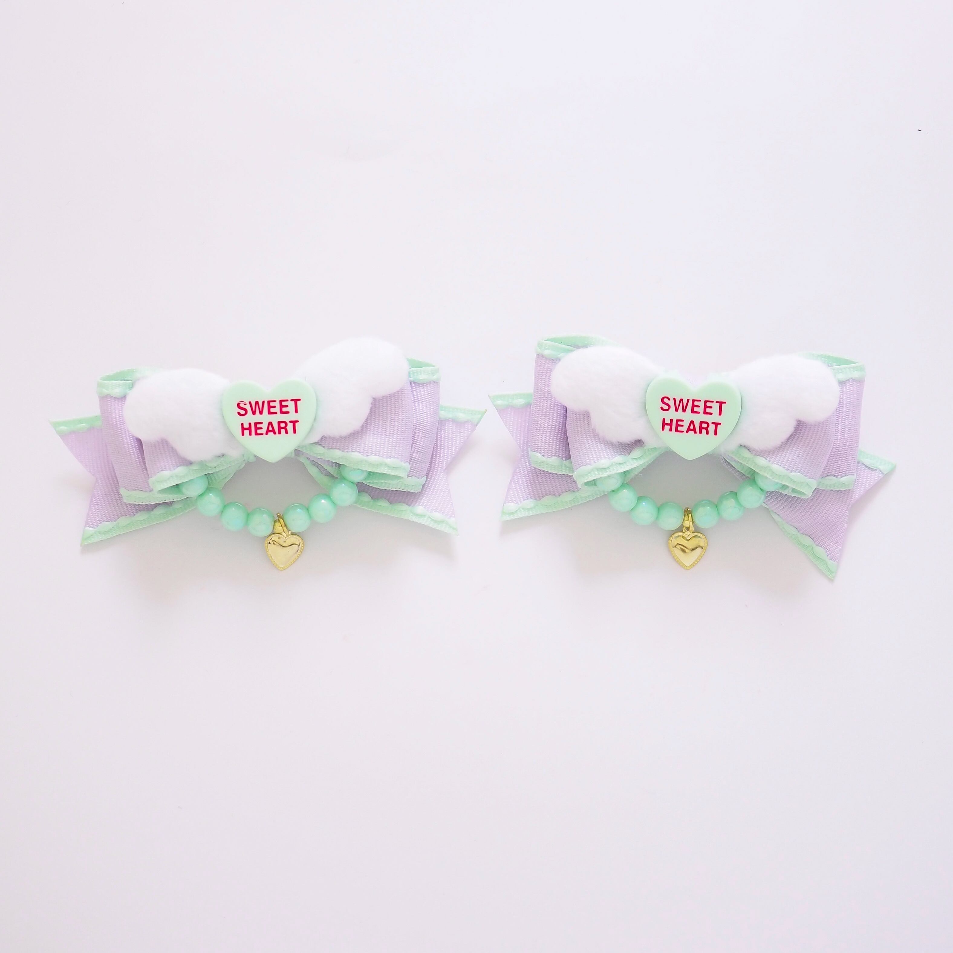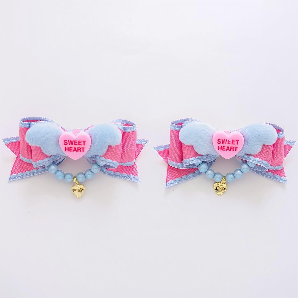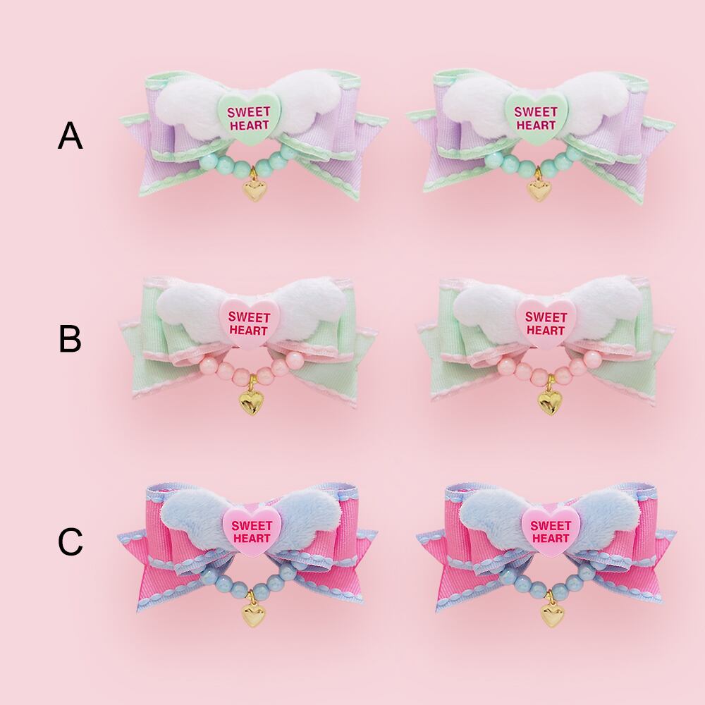 天使の羽 エンジェルウイング ヘアクリップ ハート パール飾り ヘアリボン 2個セット パステルカラー