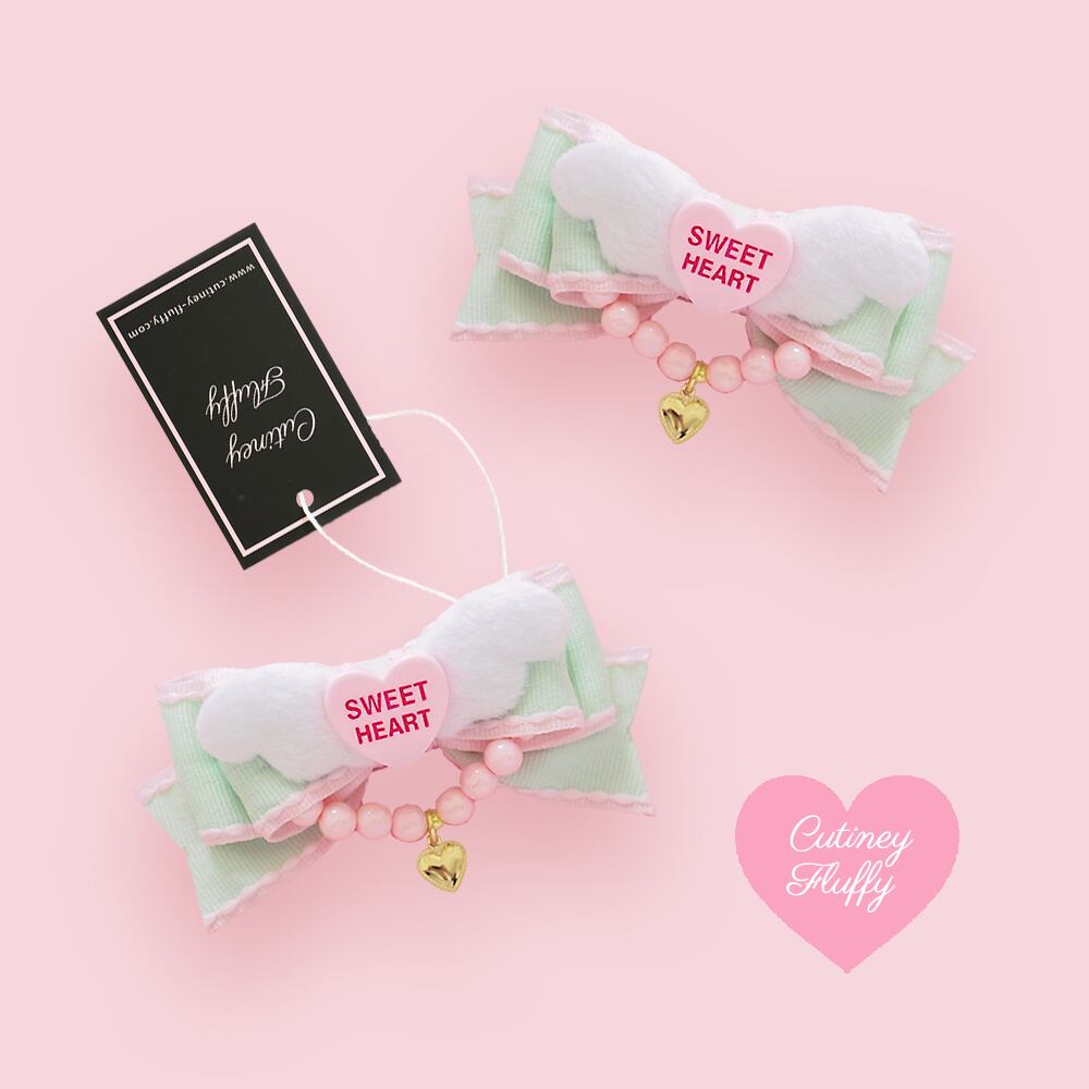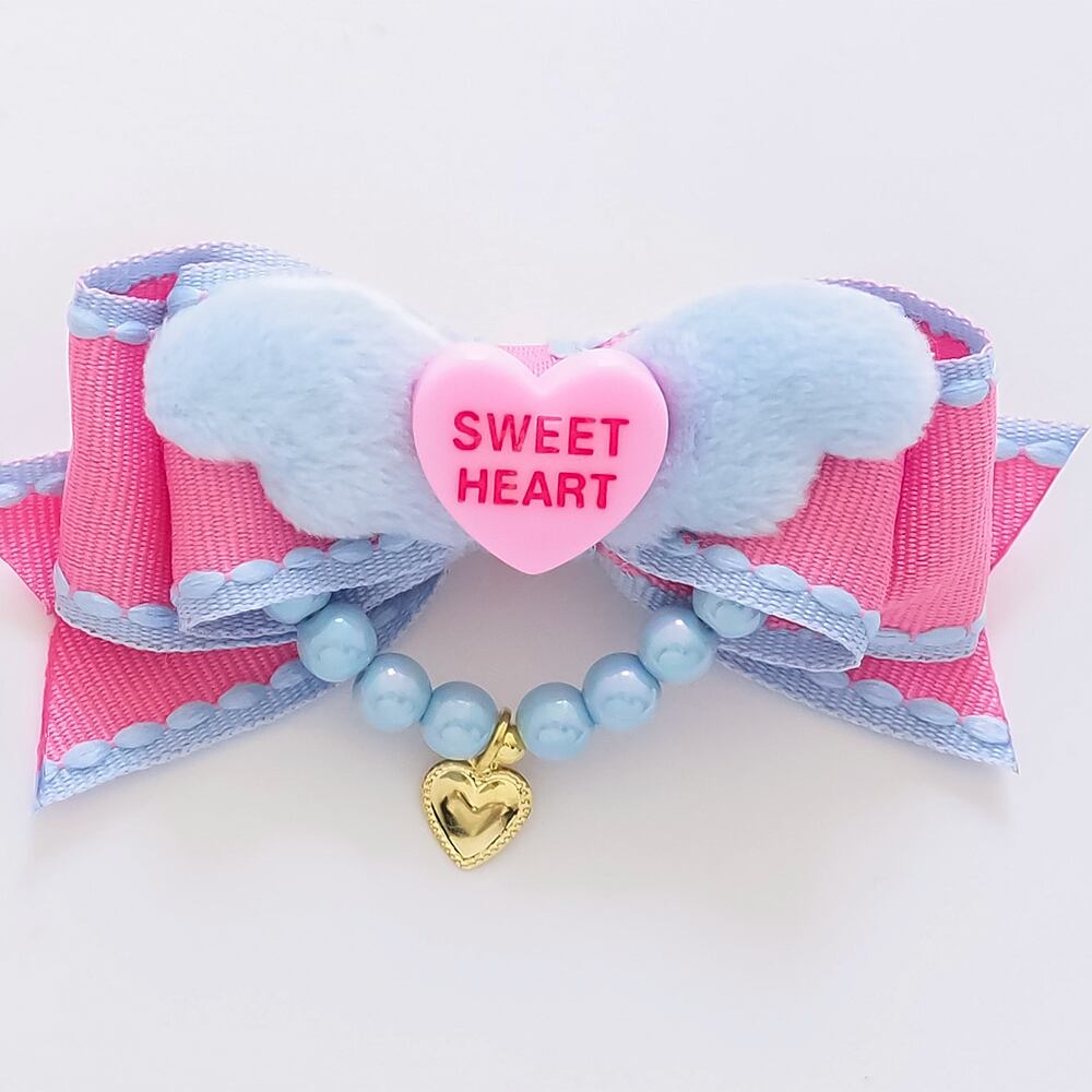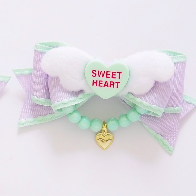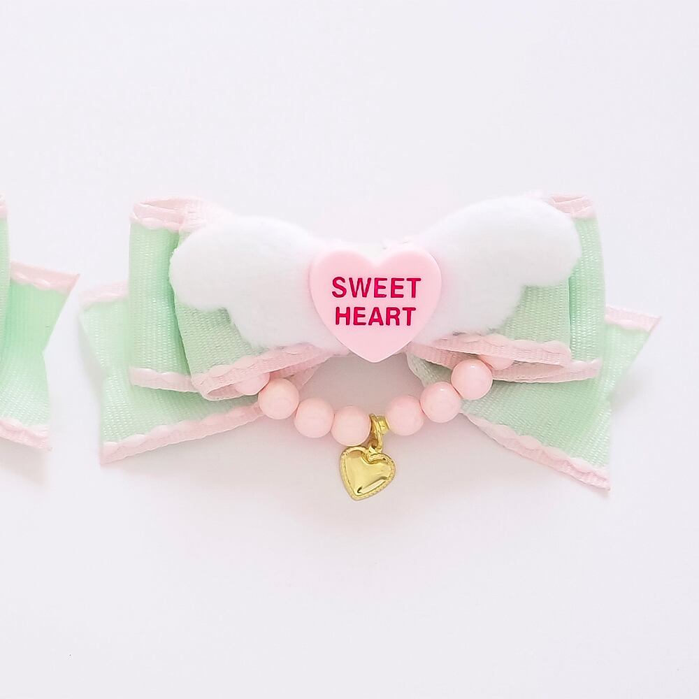 天使の羽 エンジェルウイング ヘアクリップ ハート パール飾り ヘアリボン 2個セット パステルカラー