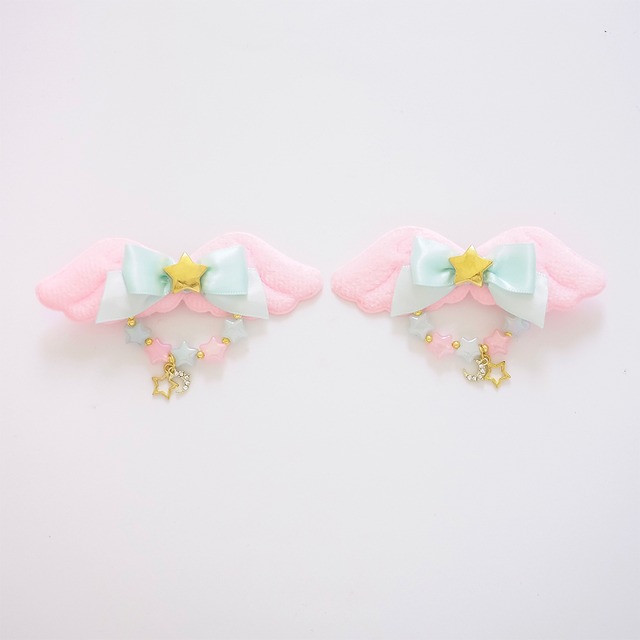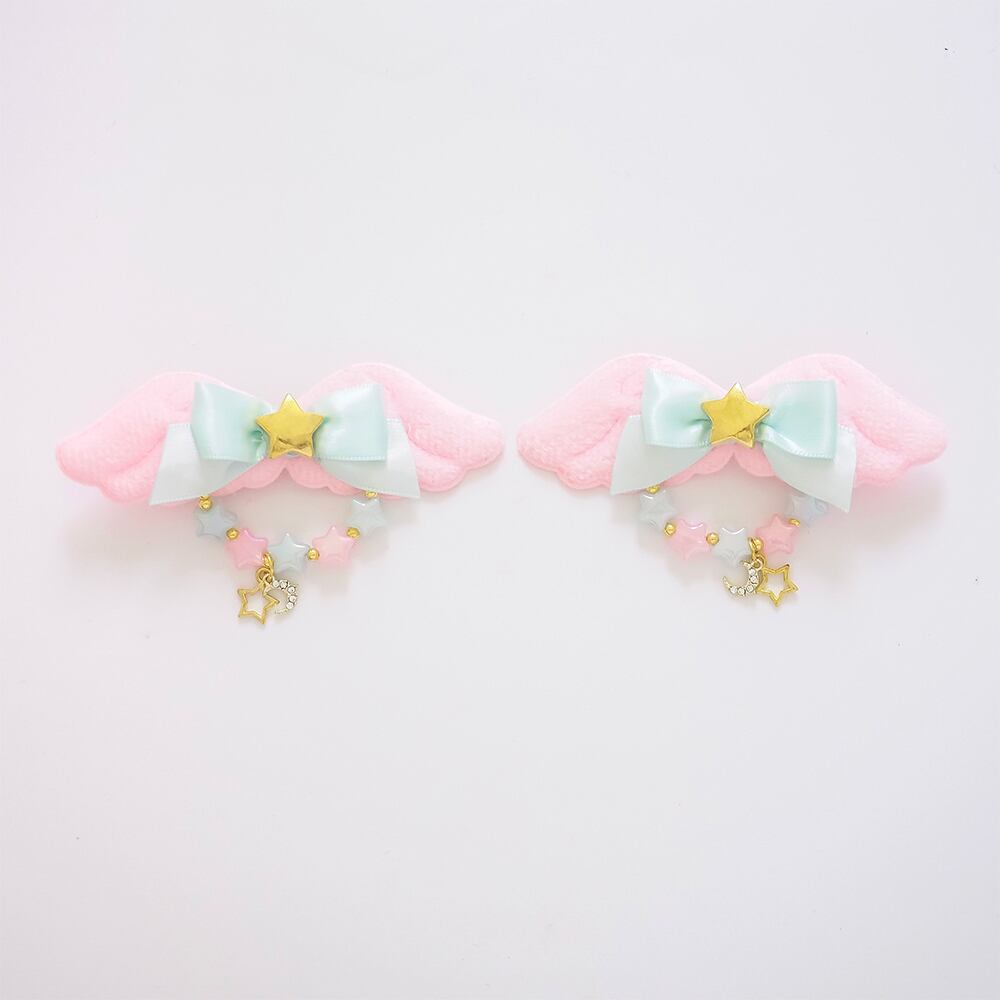 天使の羽 エンジェル ウイング スター ヘアクリップ ヘアリボン 2個セット ツインテール