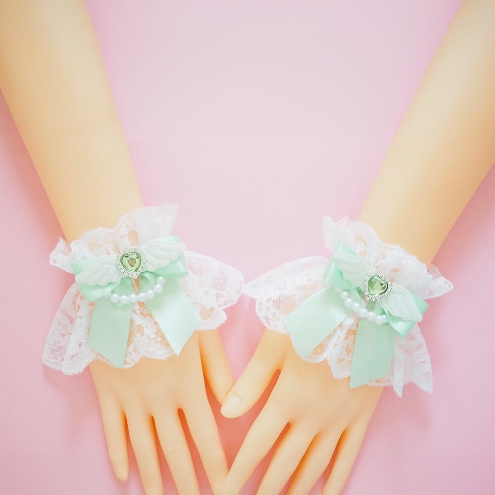 付け袖 つけ袖 付けカフス お袖留め お袖とめ お袖どめ カフス 袖 フリル フリル ブレス ブレスレット 白 バレンタイン ハロウィン メイド ロリータ ロリィタ メイド服 コンカフェ ゴスロリ ゴシック ゆめかわいい 量産型 地雷 サブカル アクセサリー ハート ラインストーン パール レース 白 ホワイト 天使の羽 エンジェル ウイング 緑 薄緑 黄緑 グリーン ミント 黄色 薄黄色 イエロー 薄イエロー