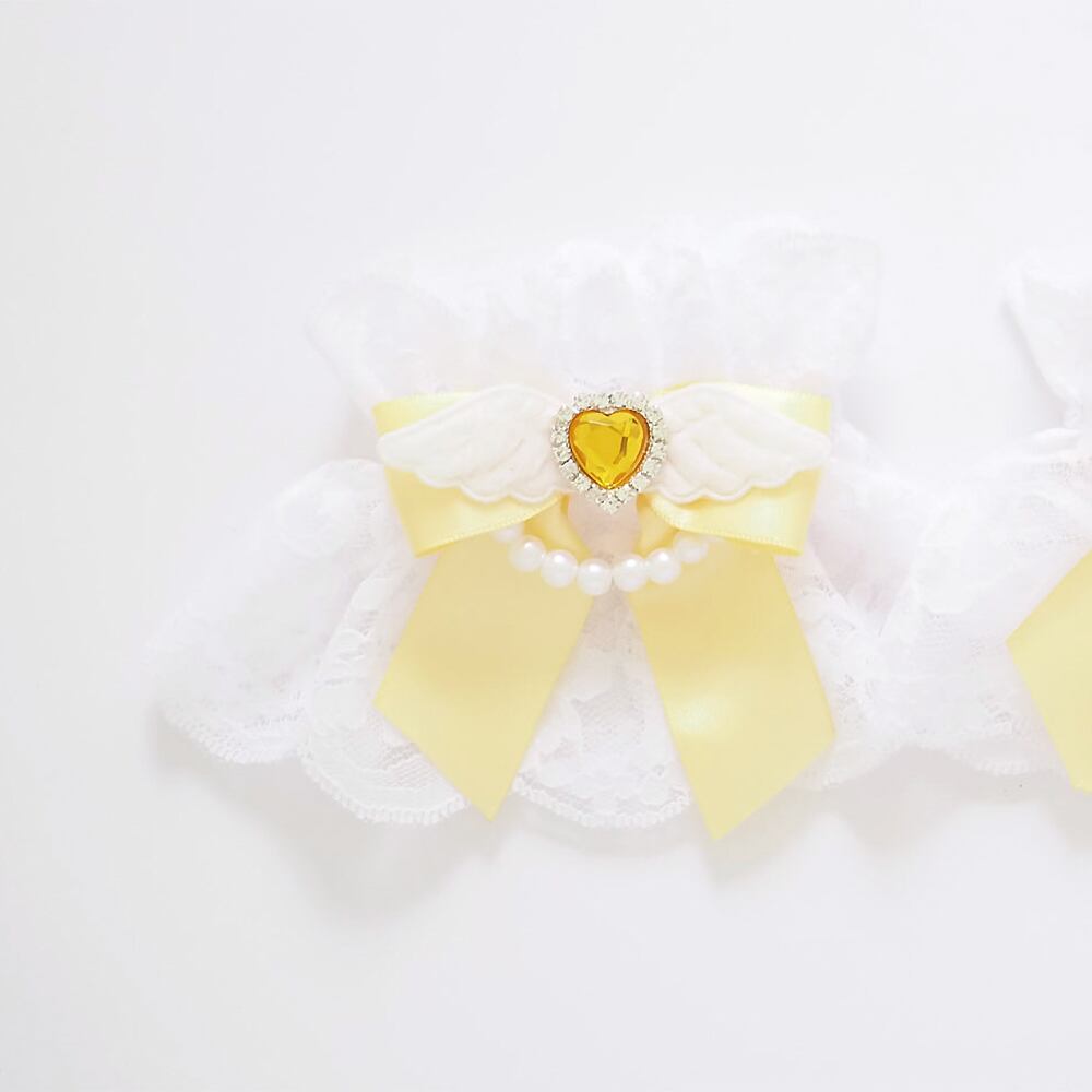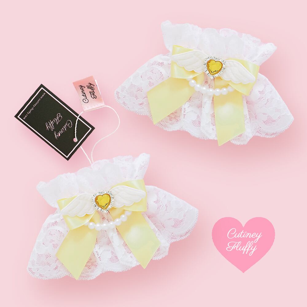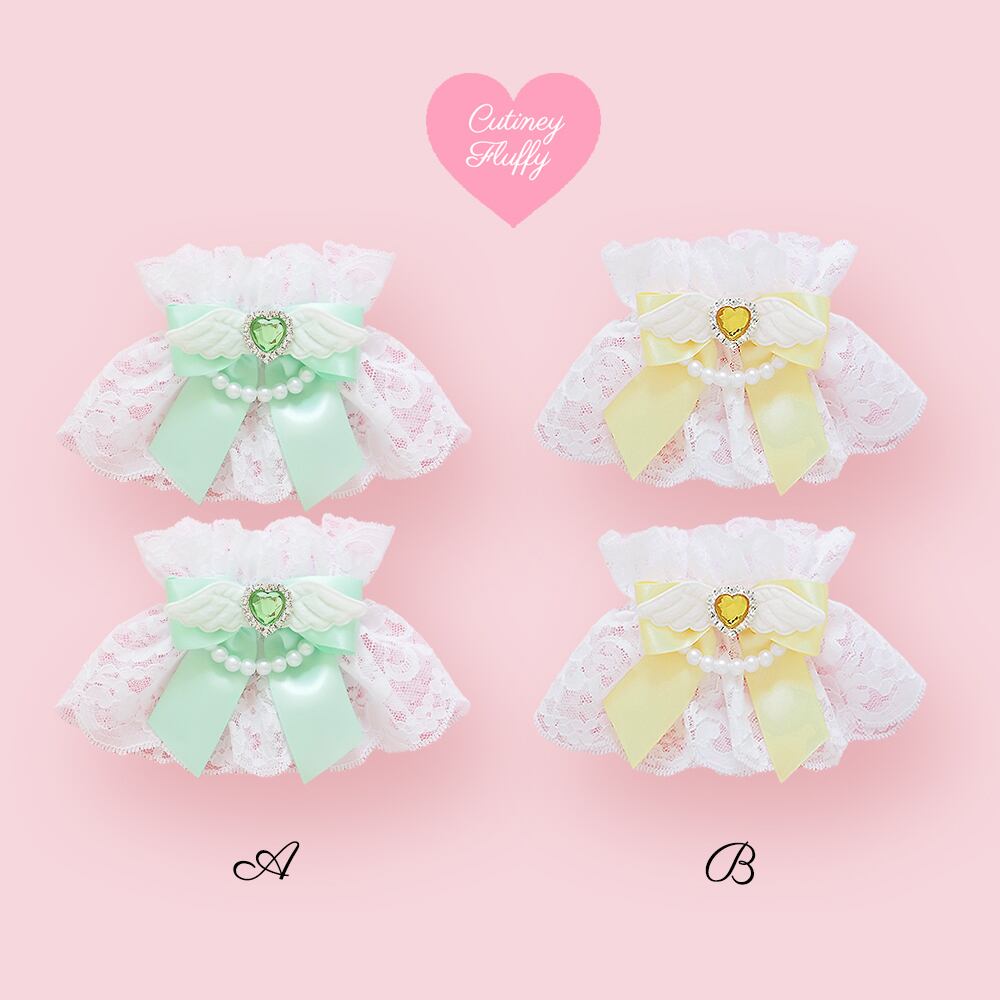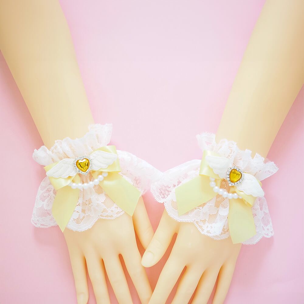 天使の羽 エンジェル ウイング お袖留め 付け カフス ハートビジュー パステル グリーン イエロー ホワイトレース