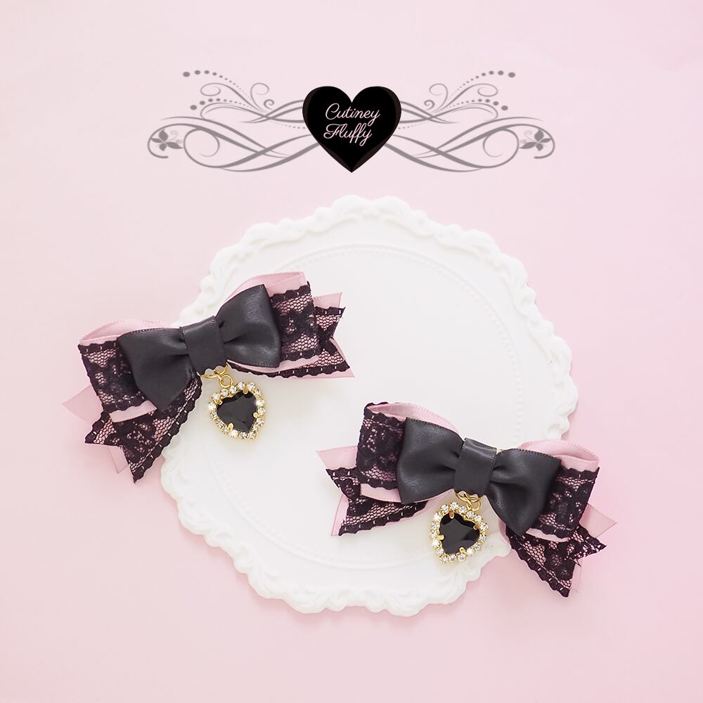 ヘアクリップ リボン ピンク 黒 量産型 ロリータ ゴシック 地雷 推し色