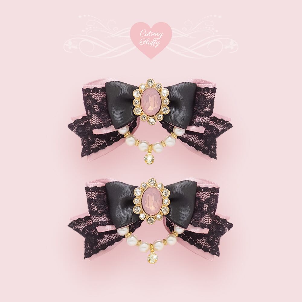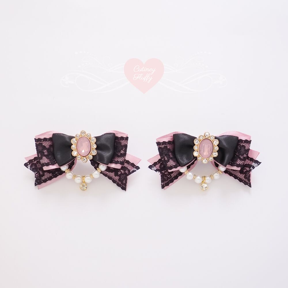 ヘア クリップ リボン 量産型 ロリータ 推し色 ピンク 黒 地雷 ゴシック