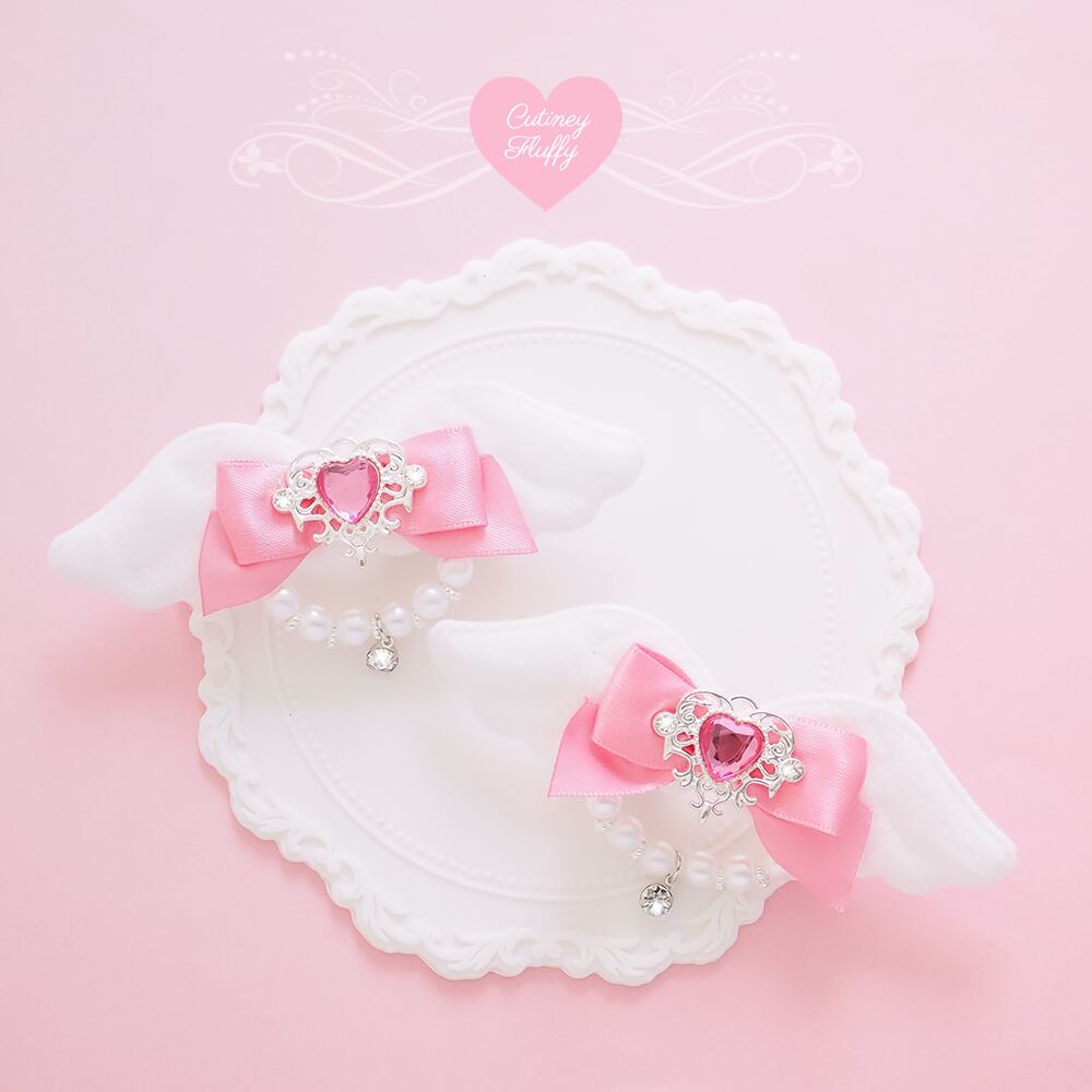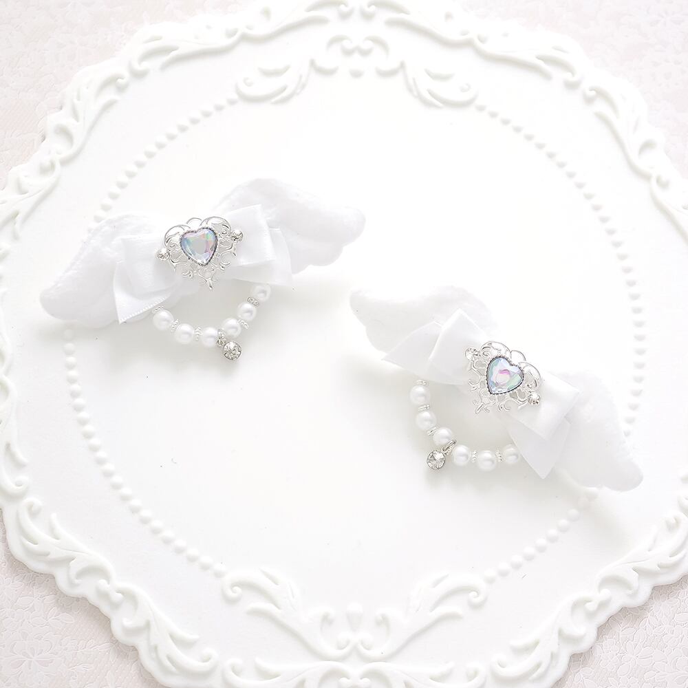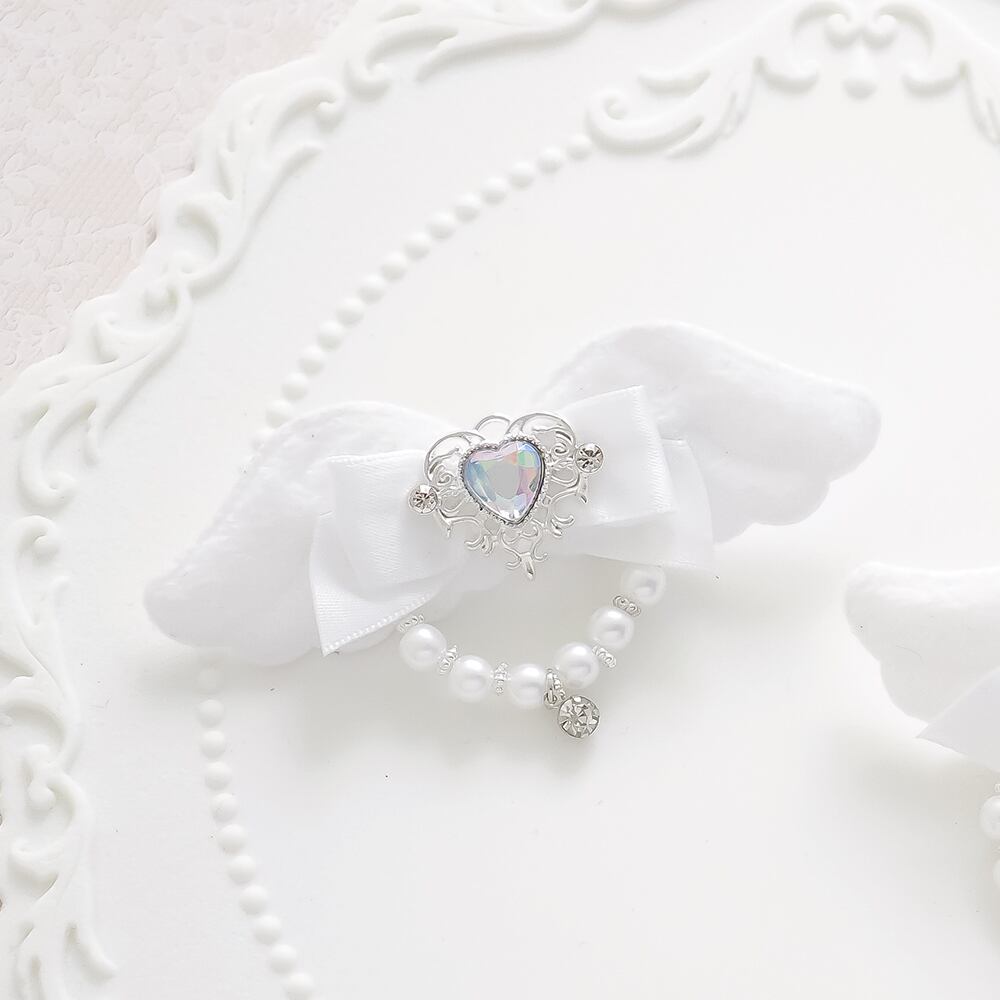 天使の羽 ヘアクリップ 魔法少女 天使界隈 推し色 シルバー 白 ロリィタ 夢かわいい 地雷 ゴスロリ リボン ハート パール 卒業式 入学式 キッズ