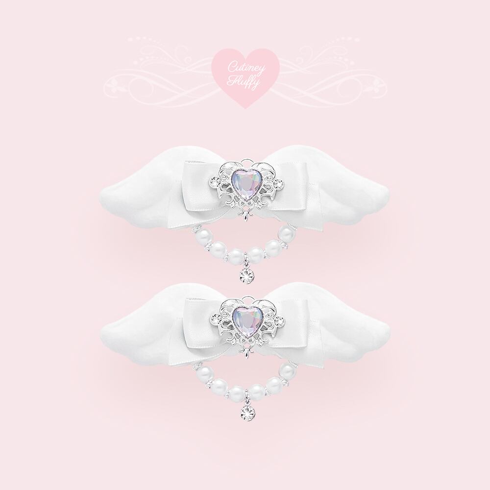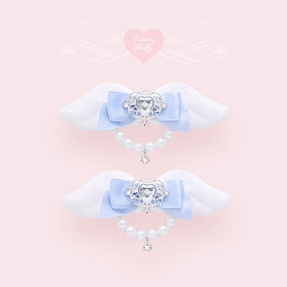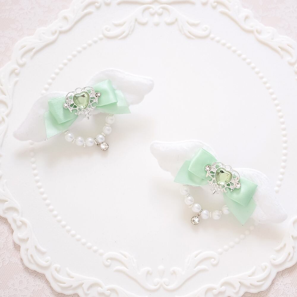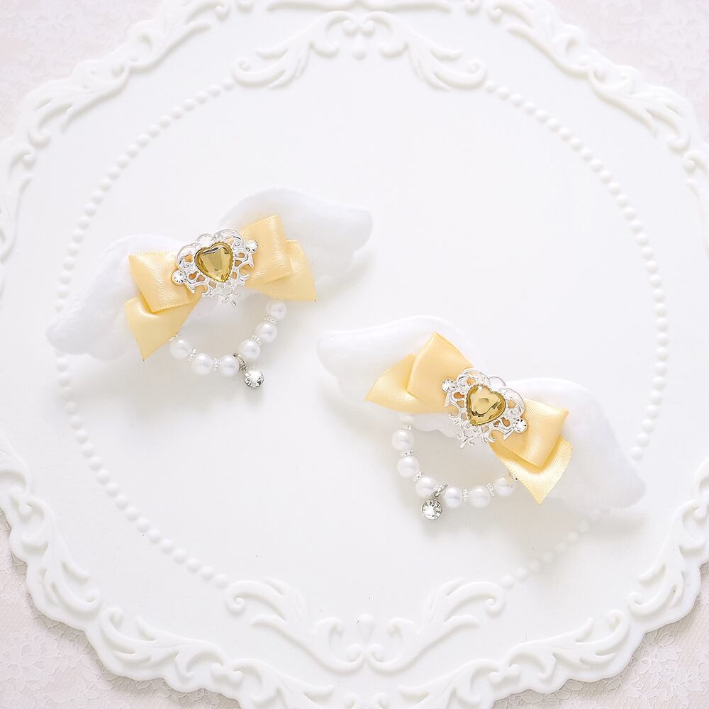天使の羽 ヘアクリップ 魔法少女 天使界隈 推し色 シルバー 白 ロリィタ 夢かわいい 地雷 ゴスロリ リボン ハート パール 卒業式 入学式 キッズ