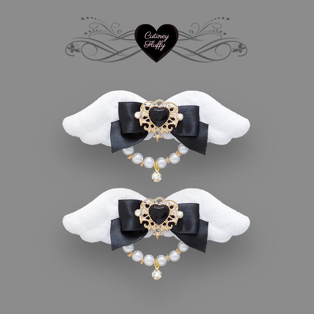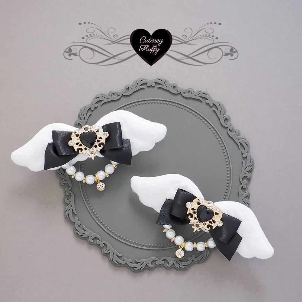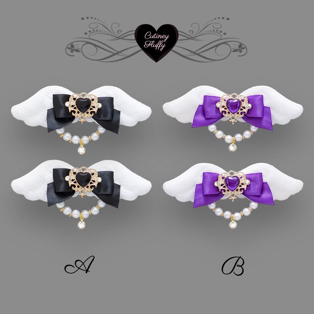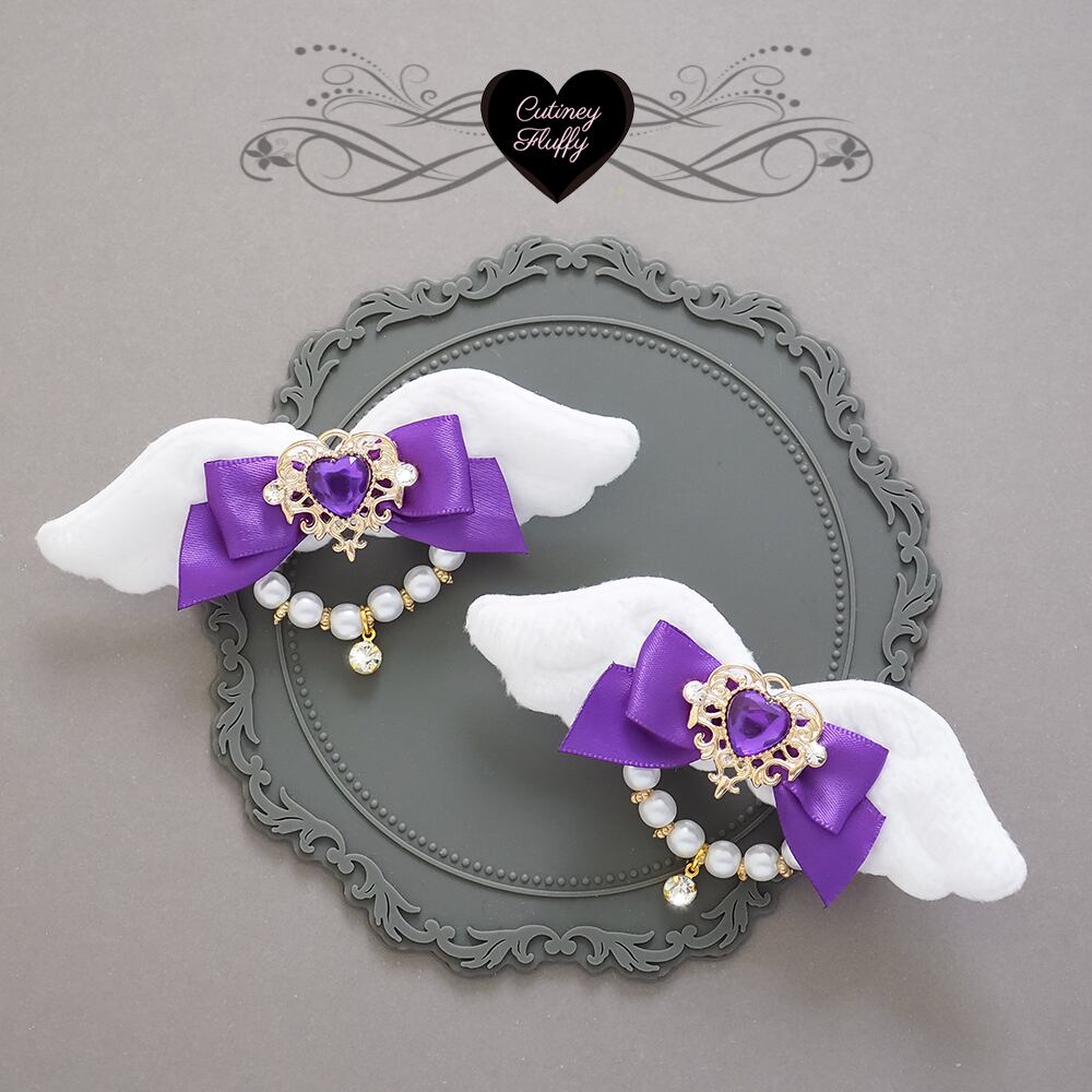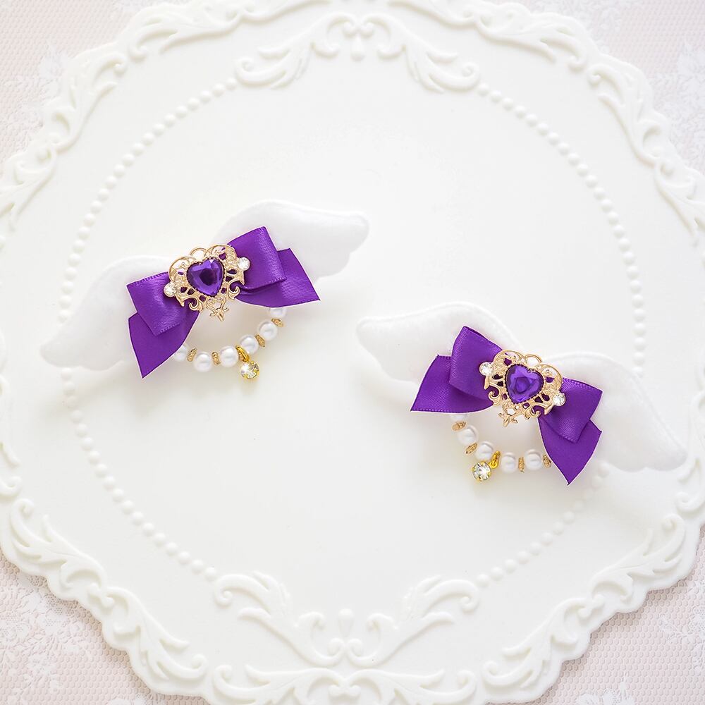 天使の羽 ヘアクリップ (2) 魔法少女 天使界隈 推し色 ロリィタ 夢かわいい 地雷 ゴスロリ リボン ハート パール 卒業式 入学式 キッズ